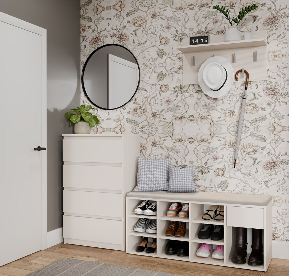 Botník TALLIN je praktický a stylový nábytek, který se skvěle hodí do každé předsíně. Jemná kašmírová barva odpovídá nejnovějším trendům interiérového designu a vnáší do prostoru teplo a eleganci. Skvěle ladí se světlými stěnami, přírodním dřevem nebo loftovými doplňky.