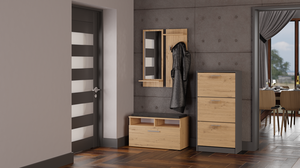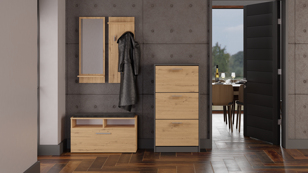 Kompaktní botník je praktickým řešením do předsíně, kde pomáhá udržet obuv přehledně uspořádanou. Díky štíhlému provedení se hodí i do menších prostor, přičemž kvalitní materiály a odolné ABS hrany zajišťují dlouhou životnost. Jednoduchý moderní design umožňuje snadné sladění s různými styly interiéru.