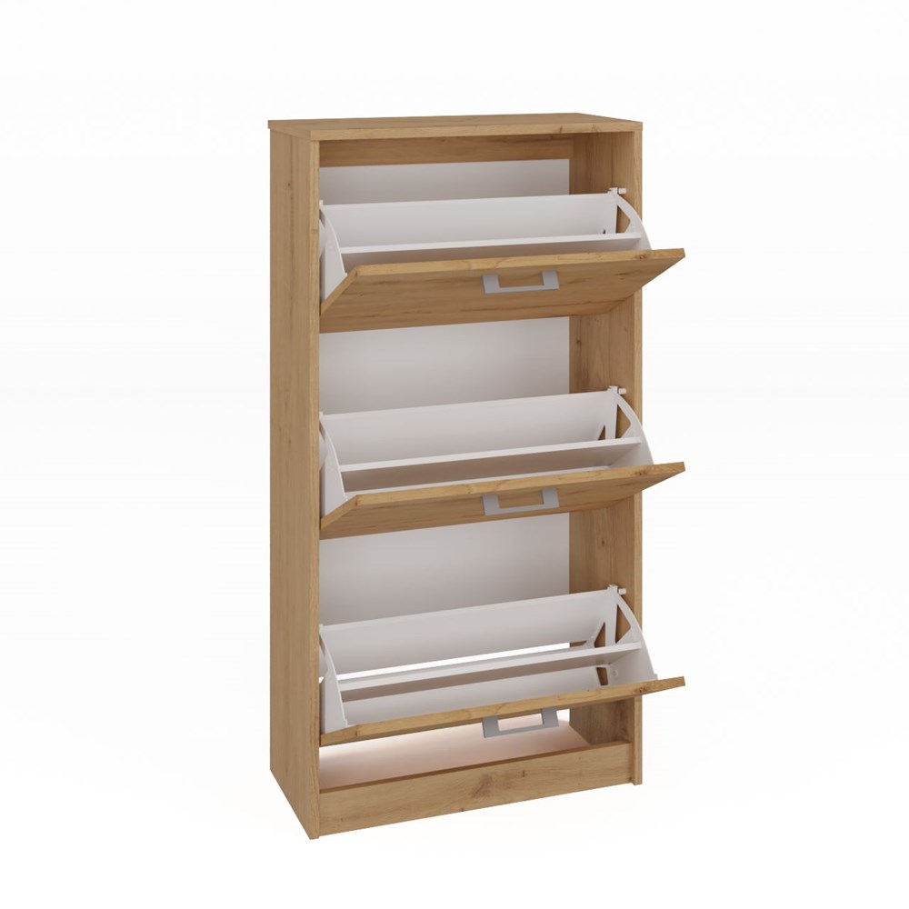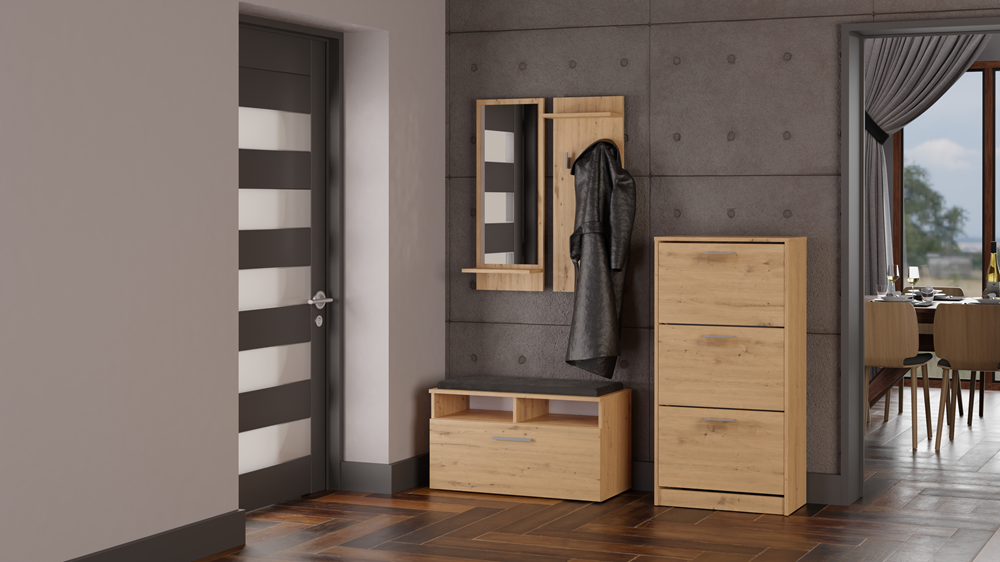 Pohodlný botník Paula v dekoru dub sonoma se vyznačuje pečlivým zpracováním, elegantním vzhledem a originálním barevným provedením, díky čemuž se hodí do každé předsíně.