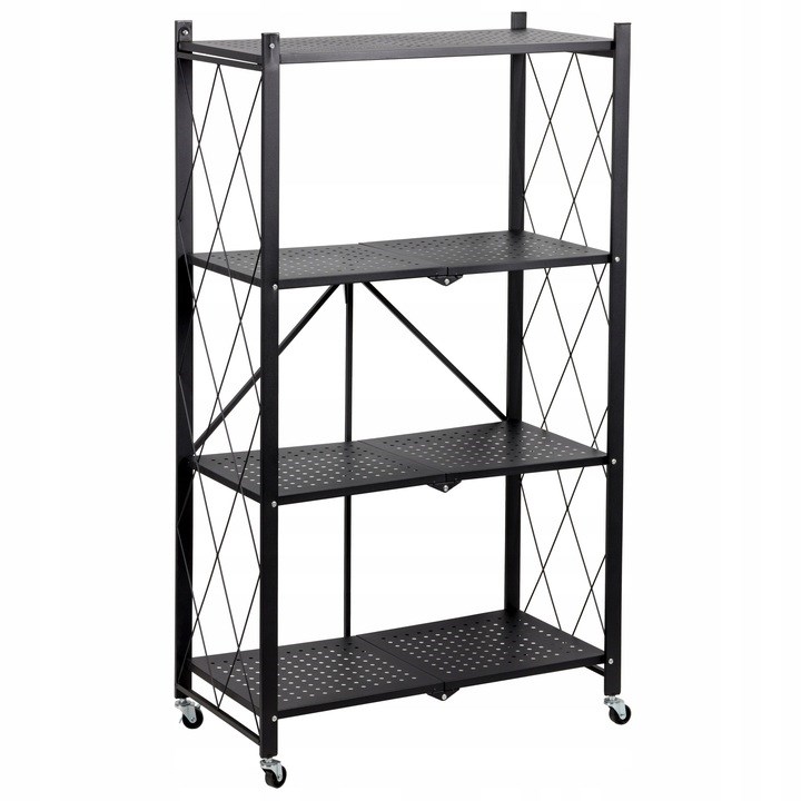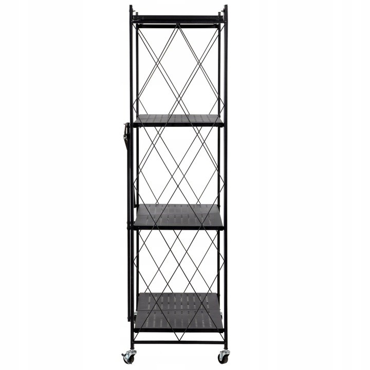 Skládací kovový regál se 4 policemi v loftovém stylu je ideálním řešením pro zvýšení funkčnosti jakéhokoli prostoru. Díky pevnému zpracování a kvalitní povrchové úpravě se hodí do všech typů místností – jak do reprezentativních prostor, například obývacího pokoje, tak i do náročnějších prostředí, jako jsou koupelna, kuchyně, sklep nebo garáž. Tento velmi odolný a snadno přemístitelný kus nábytku vyniká stabilní konstrukcí a univerzálním designem.