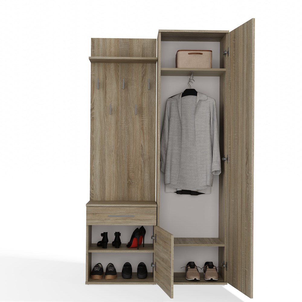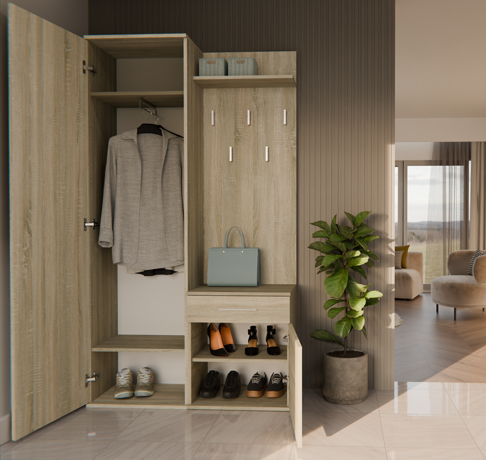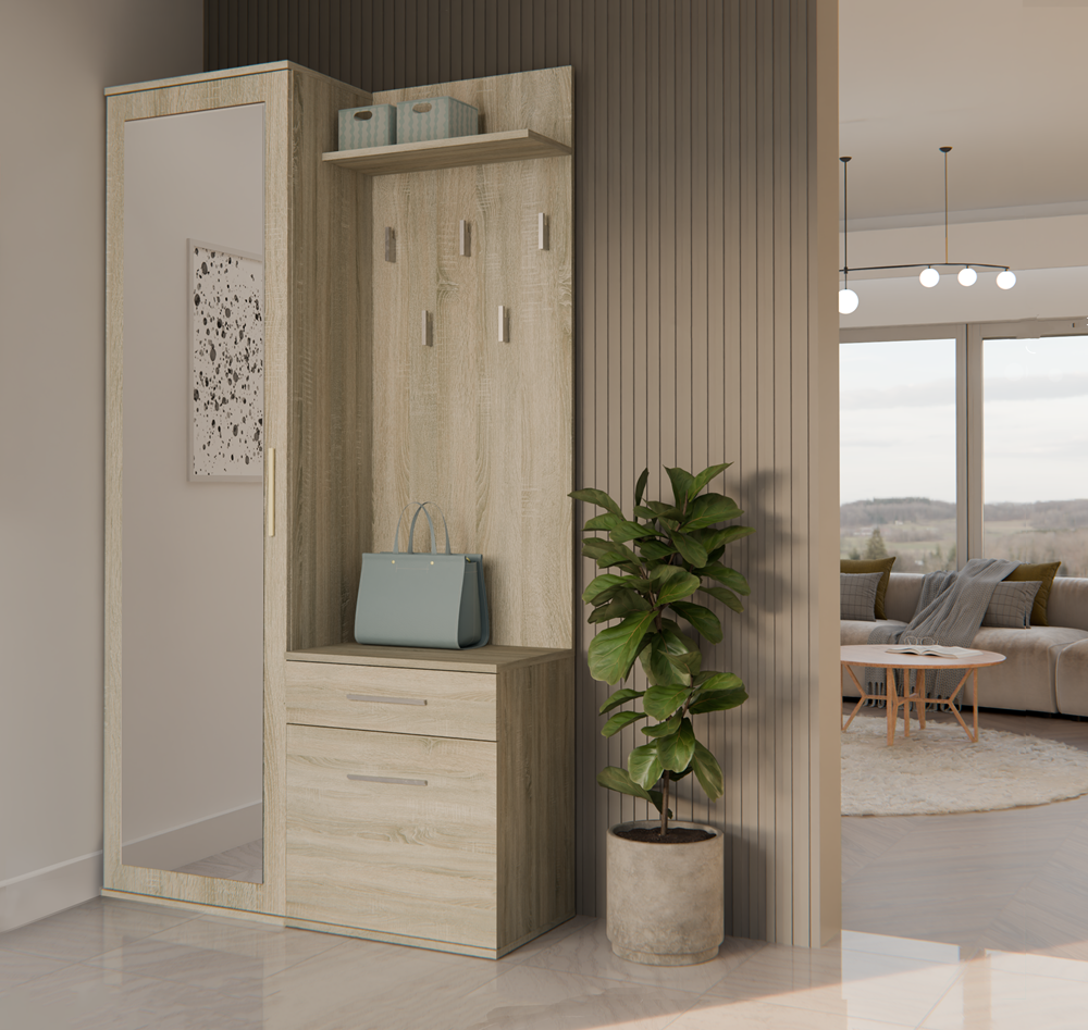 Tato předsíňová sestava je ideální pro všechny, kteří si chtějí pořídit krásný a praktický nábytek do svého bytu. Moderní design uspokojí každého, kdo ocení kombinaci jednoduchosti a elegance.