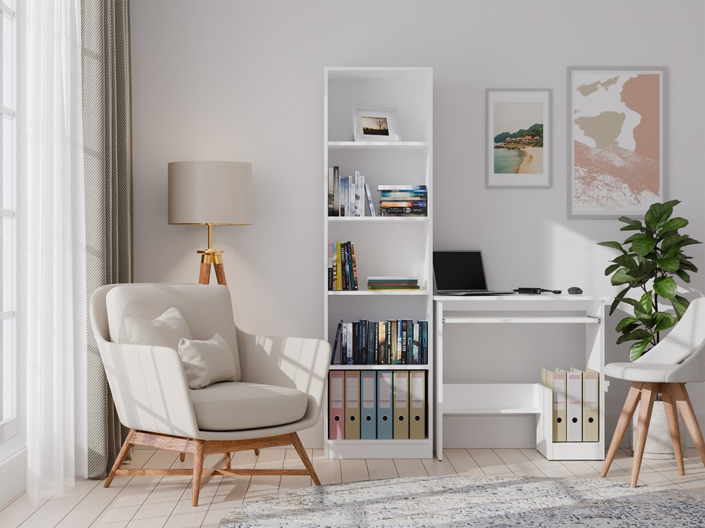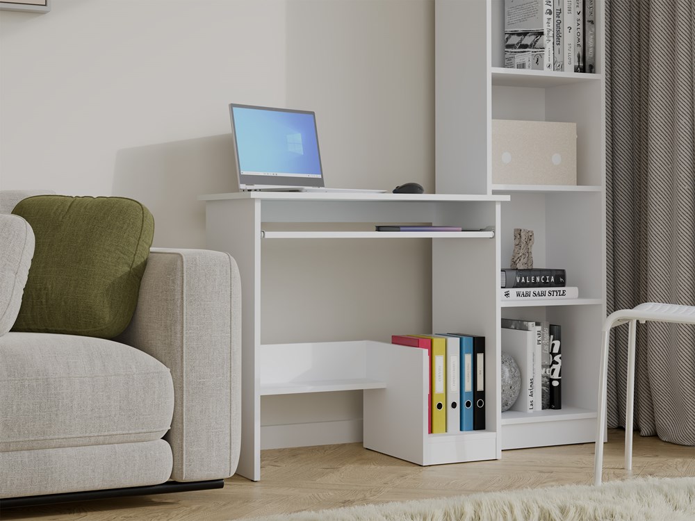 Stůl ROSA je kompaktní a zároveň velmi funkční kus nábytku, který se skvěle hodí do menších prostor – ať už do dětského nebo mladistvého pokoje, či domácí kanceláře. Díky minimalistickému designu a matně bílé barvě se stůl ideálně začleňuje do moderních interiérů a opticky zvětšuje prostor. Stůl je vybaven praktickými řešeními, která zvyšují komfort práce: vysouvací police na klávesnici, prostor na počítačovou jednotku nebo pořadače a dolní police pro další úložný prostor.