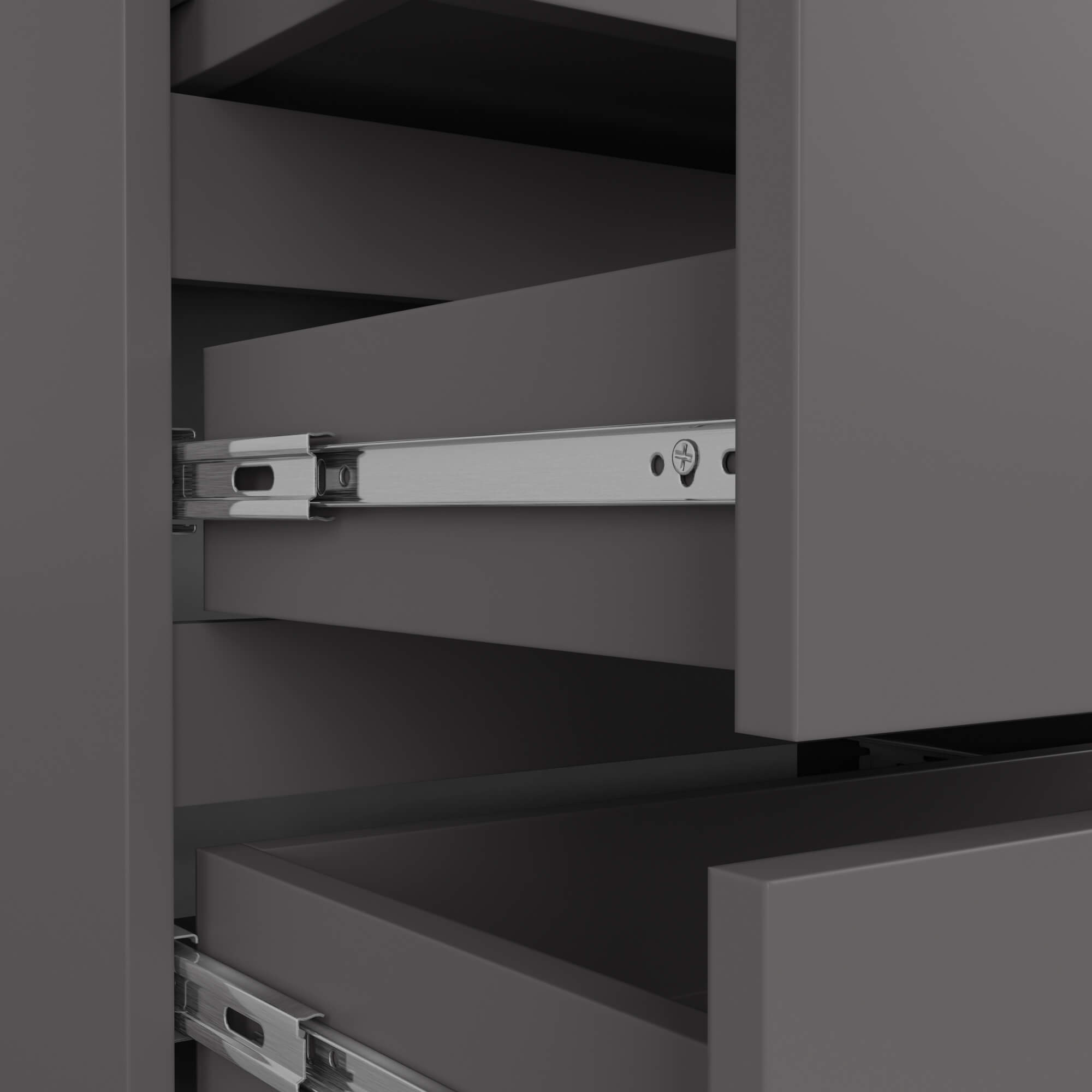 Zásuvky se pohybují na kovových kuličkových pojezdech