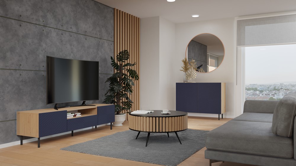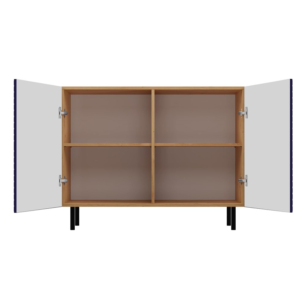 Moderní a stylová komoda KAMA je funkční a prostorný kus nábytku, který vnese nový vzhled do ložnice, obývacího pokoje nebo dětského pokoje. Jednoznačný hit a novinka – rýhovaná dvířka s geometrickým vzorem připomínajícím čtverce. Elegance, styl a jedinečný šarm v jednom. Velkou předností jsou kulaté kovové nohy o výšce 13 cm, které dodávají konstrukci vizuální lehkost a zároveň zajišťují stabilitu komody. Vnitřní prostor je vybaven policemi, které usnadňují přehledné uspořádání věcí a rychlé nalezení toho, co potřebujete.
