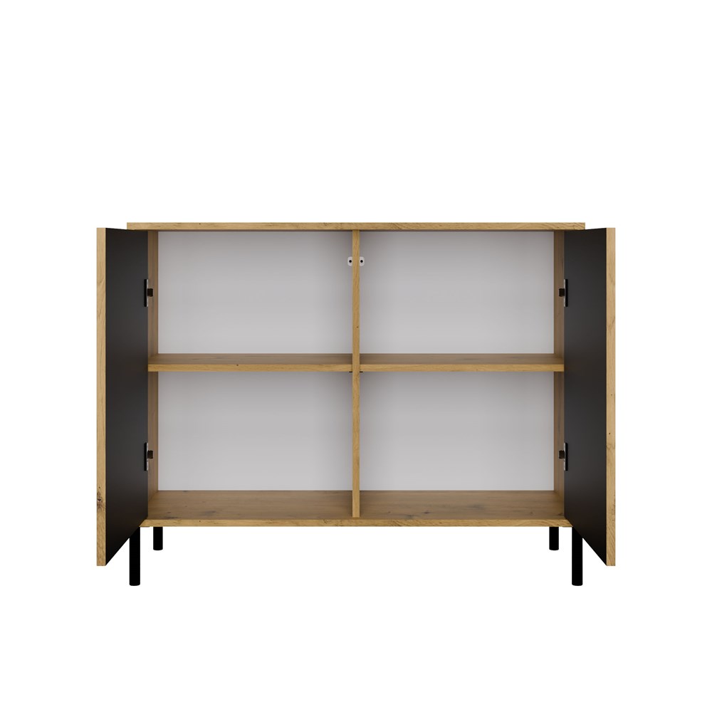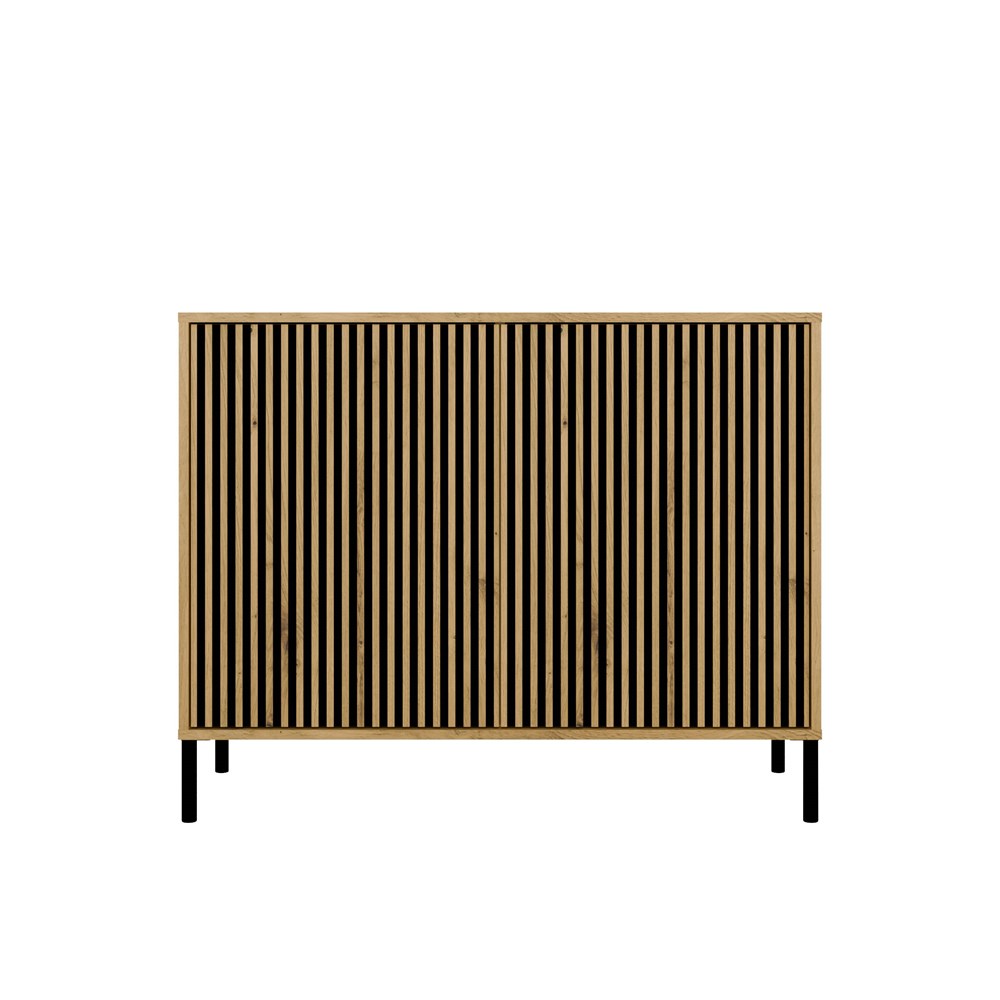 Komoda KAMARO 2D SLIM je spojením estetiky a funkčnosti, které se skvěle hodí do obývacího pokoje, pokoje pro hosty, ložnice nebo pracovny. Díky rýhovaným dvířkům (připomínajícím lamely) získává nábytek moderní a originální vzhled, ideální pro současné interiéry. Moderní systém TIP-ON umožňuje pohodlné používání bez úchytek — stačí lehce stisknout dvířka a skříňku otevřít. Komoda nabízí velký úložný prostor při zachování minimalistického a elegantního charakteru, který se hodí k mnoha typům interiérů. Kombinace módní barvy Dub Artisan s moderním designem vytváří nábytek, který dodá vašemu interiéru jemnou eleganci. Barevné provedení umožňuje snadné začlenění do různých stylů — od loftového po skandinávský.
