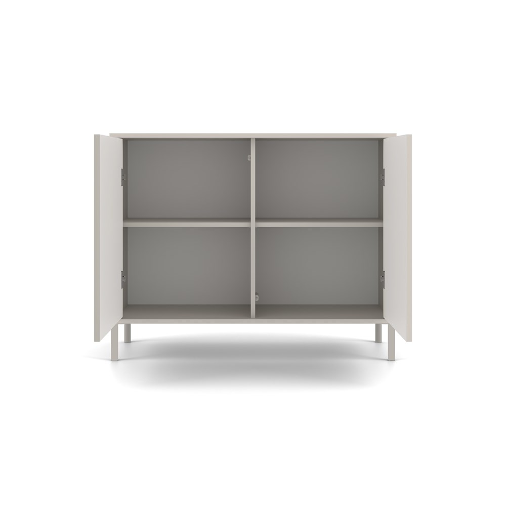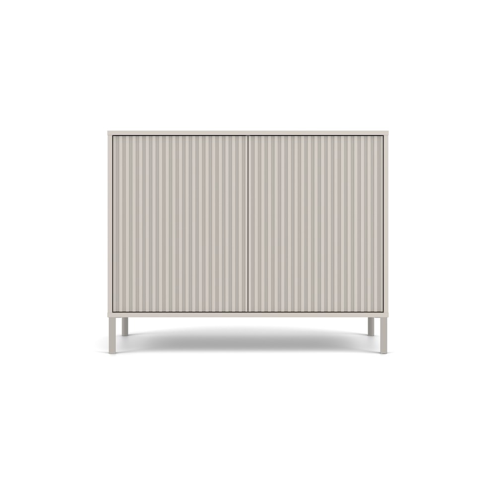 Komoda KAMARO 2D SLIM v odstínu Kaszmir představuje ideální spojení estetiky a funkčnosti. Skvěle se hodí do obývacího pokoje, hostinského pokoje, ložnice i pracovny. Díky ryflowaným (lamelovým) čelům dveří získává nábytek moderní a originální vzhled, který perfektně zapadne do současných interiérů.