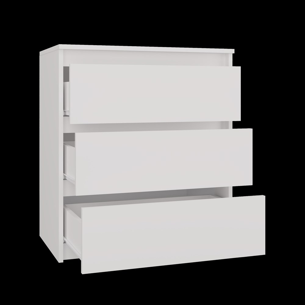 Moderní komoda z kolekce KARO je praktický a prostorný kus nábytku, který skvěle doplní interiér ložnice, obývacího pokoje i dětského pokoje. Díky univerzálnímu designu osloví všechny, kteří upřednostňují spojení jednoduchosti a elegance. Minimalistická konstrukce a bezúchytková čela zásuvek zajišťují pohodlné používání a zároveň podtrhují moderní charakter interiéru. Komoda vyniká velmi dobrou kvalitou zpracování a čistými liniemi bez viditelných krytek spojů.