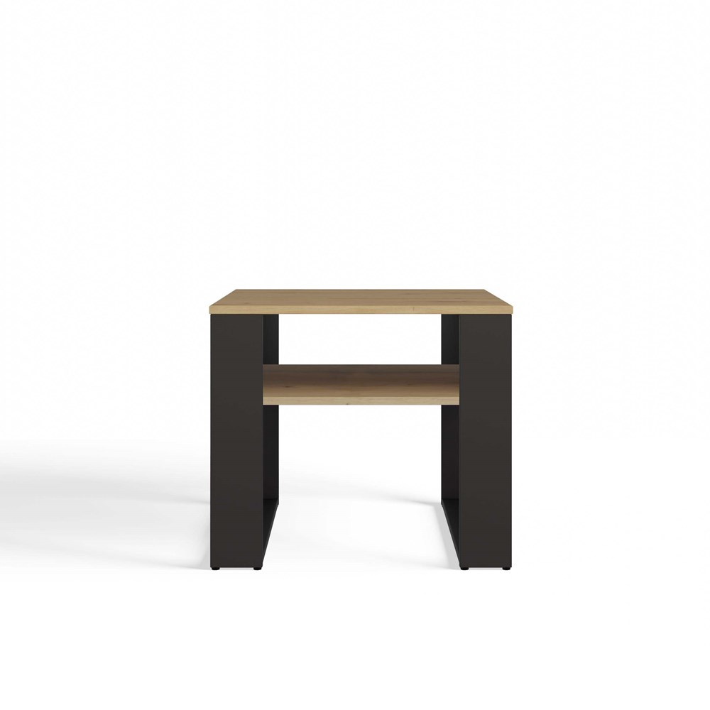 Design stolku je založen na inovativním provedení s rýhovanými bočními stranami, které imitují lamely a dodávají nábytku jedinečný a moderní charakter. Praktická police umístěná pod horní deskou poskytuje další úložný prostor pro uložení každodenních věcí. Horní deska i nohy jsou vyrobeny z laminované dřevotřískové desky se zvýšenou tvrdostí, což zajišťuje vyšší odolnost proti poškrábání a dlouhou životnost. Montáž je rychlá a snadná díky přiloženému návodu a kompletnímu montážnímu příslušenství. Stolek se výborně hodí do obývacího pokoje. Je vyroben z dvakrát laminované desky se zvýšenou tvrdostí, která zajišťuje odolnější povrch. Použití kvalitních materiálů, zajímavý tvar nohou a prostorná horní deska vytvářejí praktický a nepostradatelný kus nábytku.