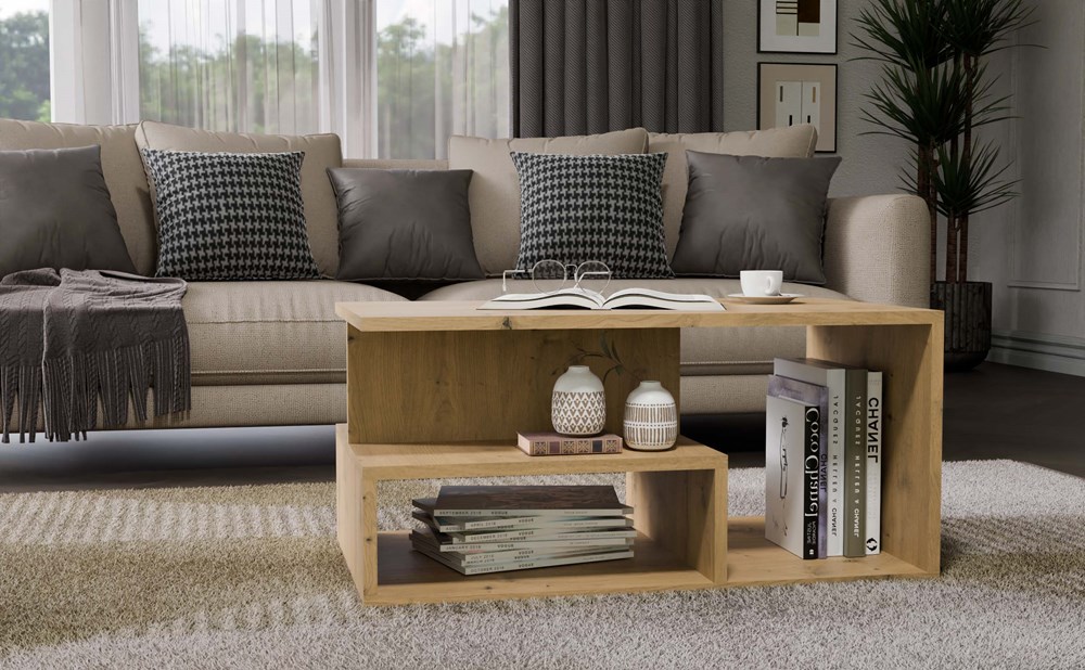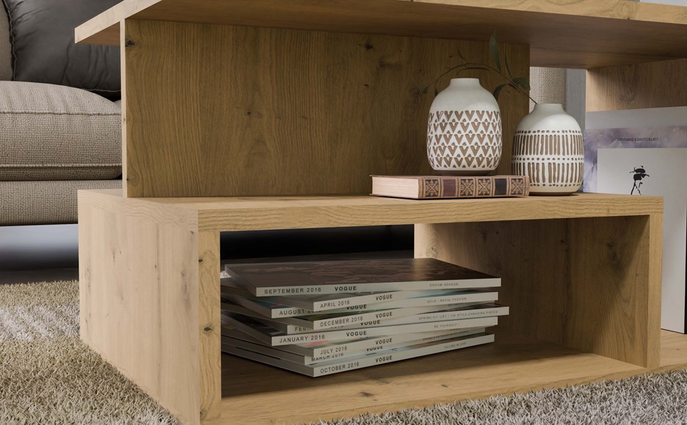 Konferenční stolek je vyroben z pevné laminované desky a doplněn praktickou spodní policí pro uložení každodenních drobností. Skvěle se hodí do moderních obývacích pokojů, menších místností i elegantních kanceláří.