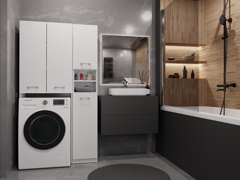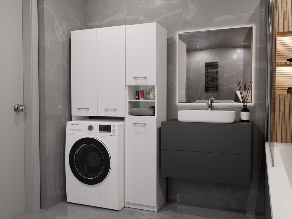 Koupelnová sada „MARPOL DD“ Regálový sloupek MARBELA + skříňka nad pračku POLA DDMODEL: MARPOL DDKOLOR: BIEL MAT V každé koupelně se najdou věci, které potřebují své místo. Díky praktickým sloupům získáte místo na pračku a účinně zvládnete nepořádek, aniž byste zabrali příliš mnoho prostoru. Univerzální vzhled splní očekávání všech, kteří ocení spojení jednoduchosti a elegance. Minimalistické úchytky zajišťují pohodlný přístup k obsahu skříňky. Pečlivé zpracování. Možnost volby strany otevírání dvířek – vlevo/vpravo přímo při montáži. Polský výrobce.
