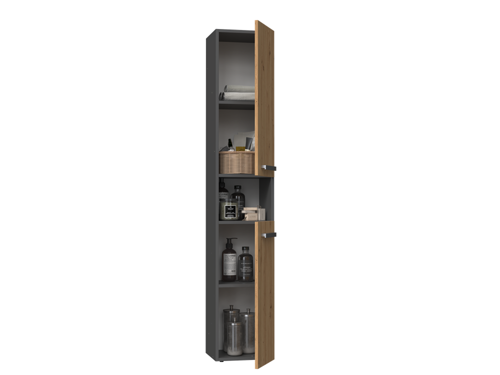 Každá koupelna potřebuje promyšlené úložné řešení. Praktické sloupkové skříňky umožňují udržet pořádek a přehled, aniž by zabíraly zbytečně mnoho místa. Nadčasový a univerzální design ocení všichni, kdo preferují spojení jednoduchosti a elegance. Minimalistické úchytky zajišťují pohodlný přístup k obsahu a precizní zpracování podtrhuje kvalitu nábytku. Směr otevírání dvířek lze nastavit při montáži – vlevo nebo vpravo. Skříňku lze snadno kombinovat s dalšími produkty ze série NEL a vytvořit tak praktickou a harmonickou koupelnovou sestavu.