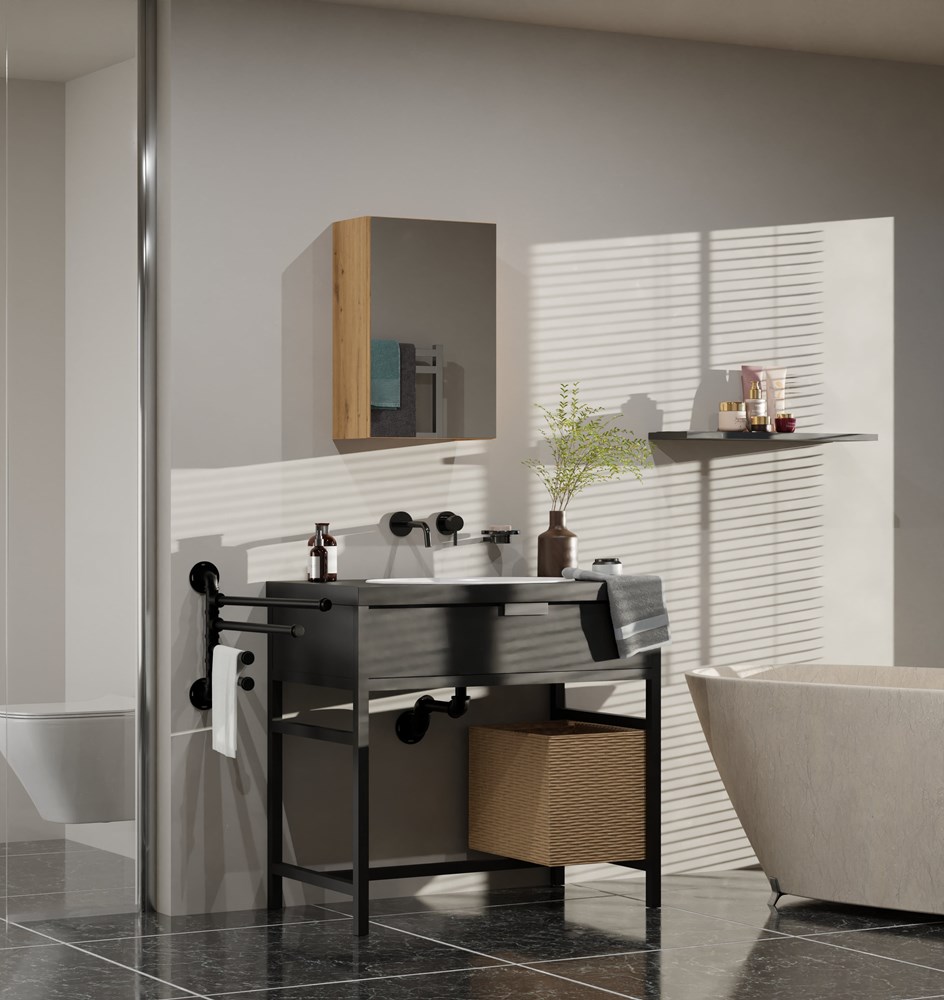 Ideální pro malé a středně velké koupelny – efektivně využívá prostor nad umyvadlem.Skříňka je vybavena třemi praktickými policemi ukrytými za elegantními dvířky s dekorativním zrcadlem. Moderní a stylový design doplňují hladké bočnice a kvalitní kování.Minimalistická konstrukce. Závěsná koupelnová skříňka nad umyvadlo je skvělým řešením pro menší prostory a umožňuje maximálně využít dostupný prostor ve vaší koupelně. Poskytuje dostatek úložného místa pro ručníky, kosmetiku, čisticí prostředky a další koupelnové doplňky.