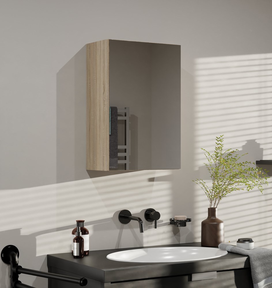 Ideální pro malé a středně velké koupelny – účelně využívá prostor nad umyvadlem.Skříňka je vybavena třemi praktickými policemi skrytými za elegantními dvířky s dekorativním zrcadlem.Moderní a stylový design s hladkými bočnicemi a současným kováním.Minimalistická konstrukce.Závěsná koupelnová skříňka nad umyvadlo je ideálním řešením pro menší prostory a umožňuje maximálně využít dostupný prostor ve vaší koupelně. Poskytuje dostatek úložného místa pro ručníky, kosmetiku, čisticí prostředky a další koupelnové doplňky.