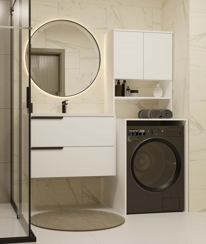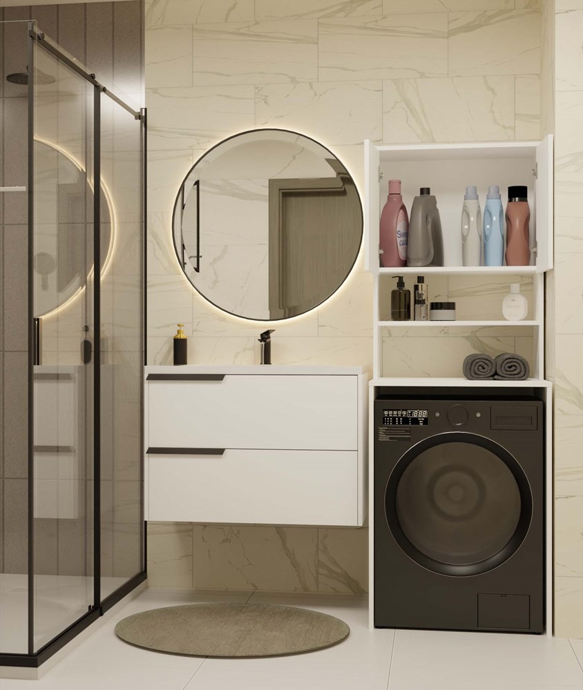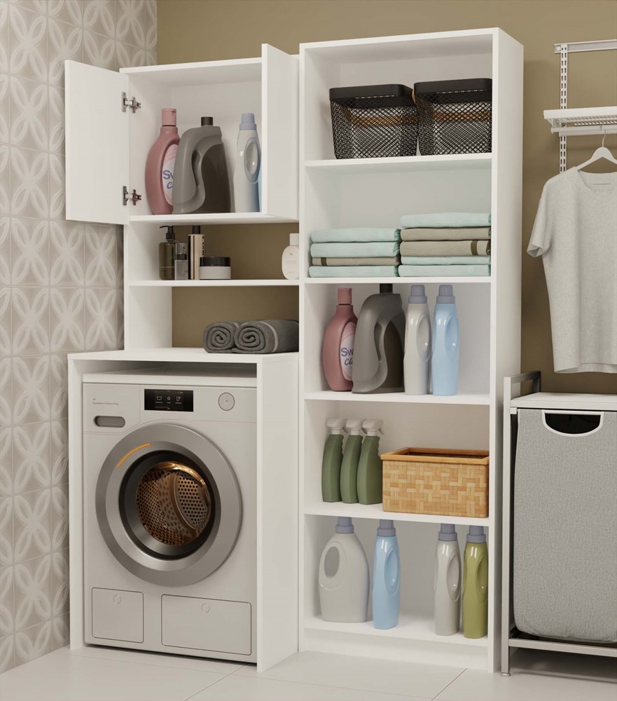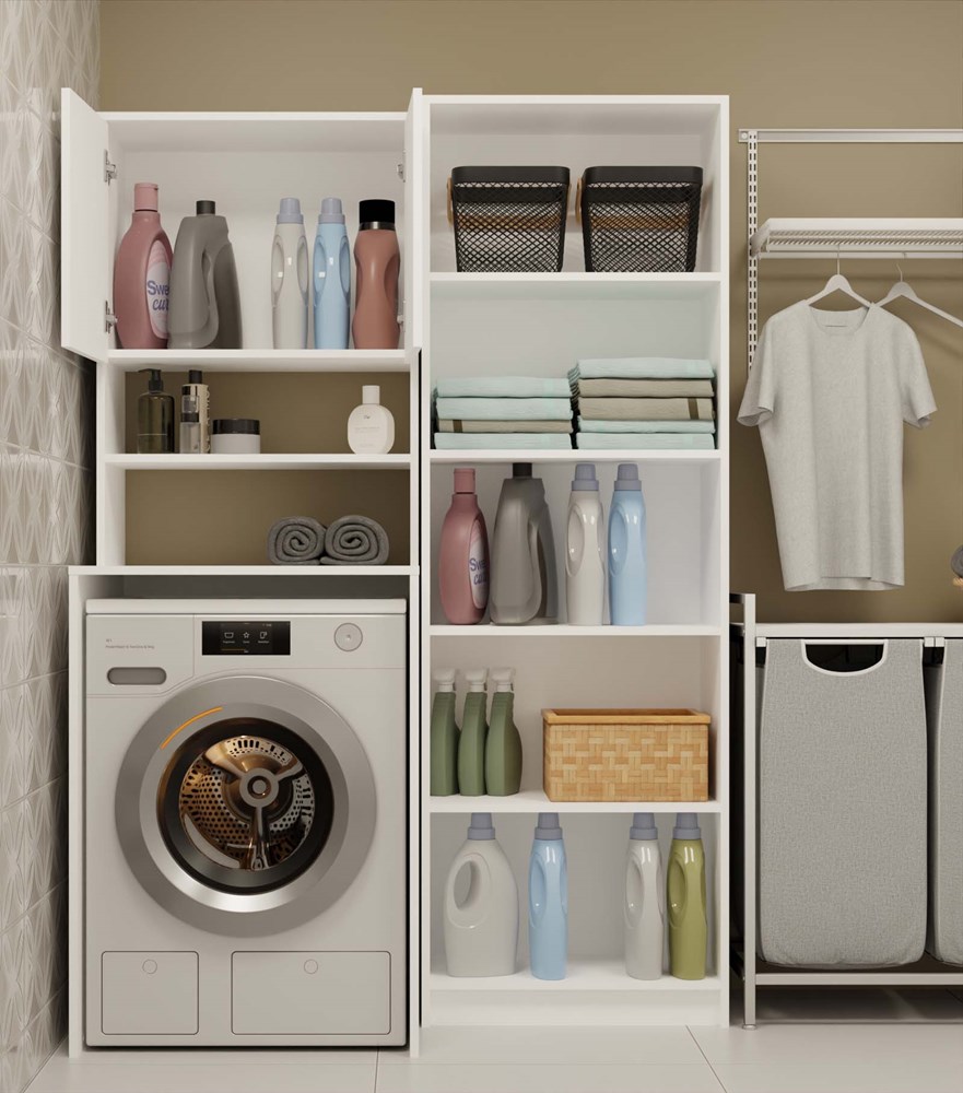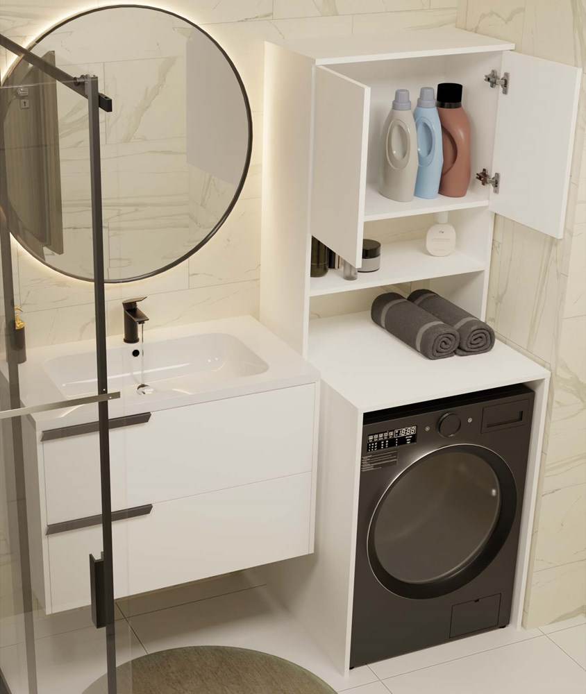 Koupelnový regál nad pračku je ideálním řešením pro maximální využití prostoru v koupelně. Prostorné police umožňují ukládání ručníků, čisticích prostředků a dalšího koupelnového příslušenství.
