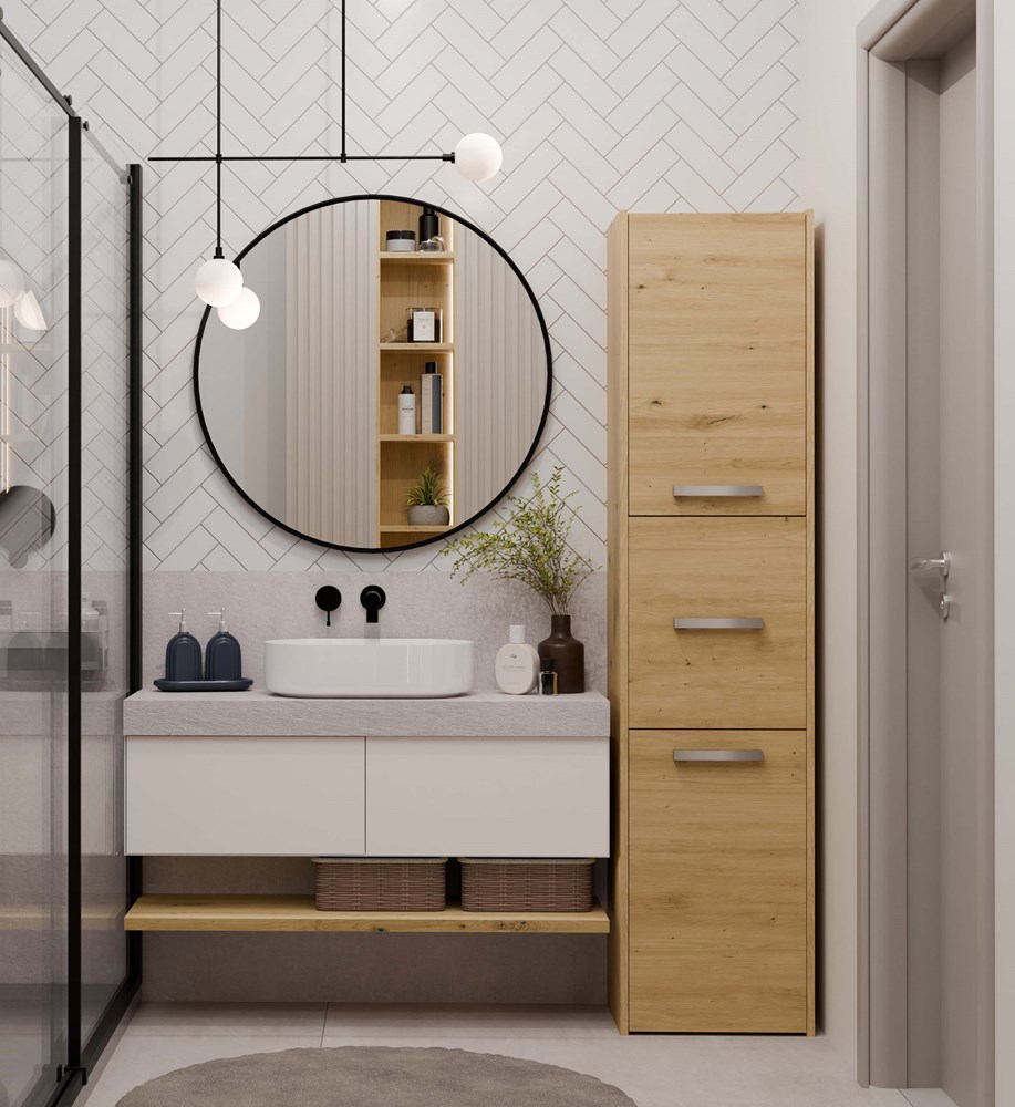 V každé koupelně se najdou věci, které potřebují své místo. Díky praktickým sloupkovým skříňkám snadno udržíte pořádek, aniž byste zabrali příliš mnoho prostoru. Univerzální vzhled splní očekávání všech, kteří oceňují spojení jednoduchosti a elegance.Minimalistické úchytky zajišťují pohodlný přístup k obsahu nábytku.Pečlivá kvalita zpracování. Možnost volby strany otevírání dvířek – levá / pravá – přímo při montáži.