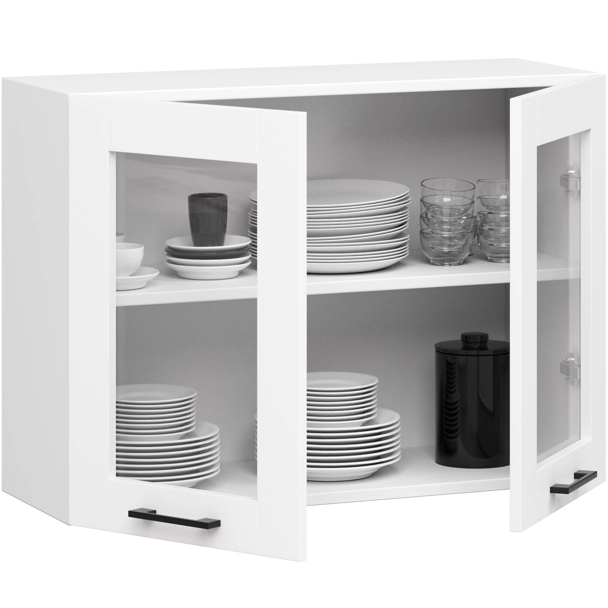 Závěsná skříňka se uvnitř skládá ze dvou polic, které poskytují místo pro uložení potravin nebo kuchyňského nádobí nezbytného v každé kuchyni. Nábytek odolný proti poškození jistě osloví všechny milovníky jednoduchosti a elegance.