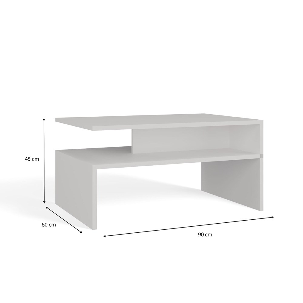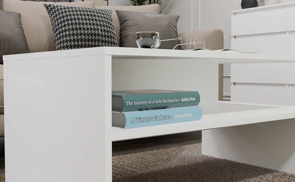 Ideální volba pro všechny, kteří si přejí mít ve svém interiéru krásný a stylový nábytek. Moderní stolek v bílé barvě splní očekávání každého, kdo oceňuje spojení jednoduchosti a elegance. Jeho lehká a čistá forma z něj činí perfektní doplněk do obývacího pokoje. Nábytek je vyroben z laminované dřevotřískové desky o tloušťce 16 mm.