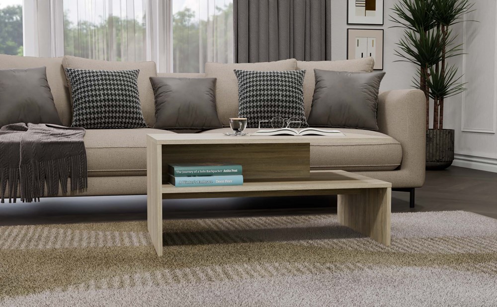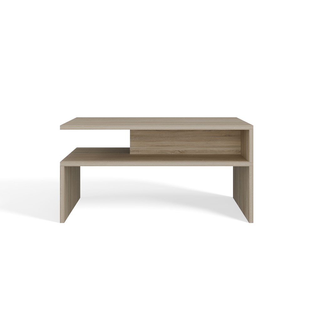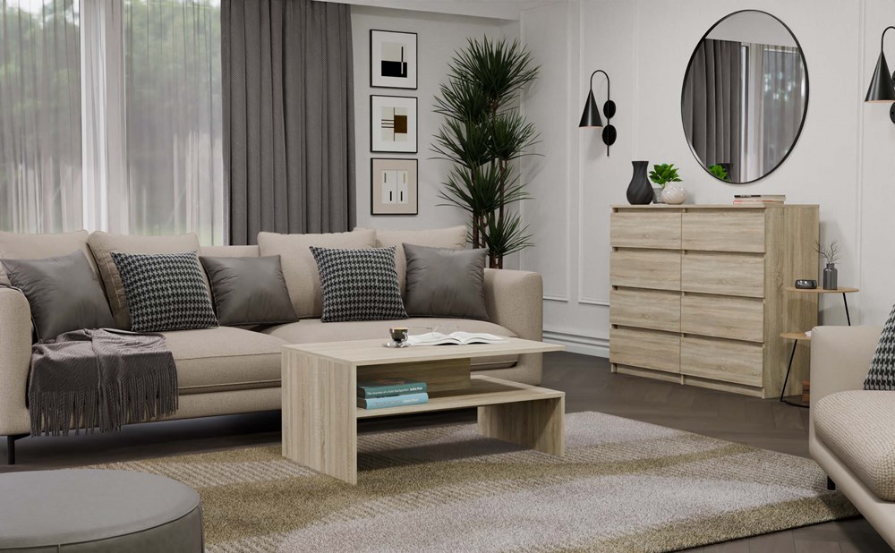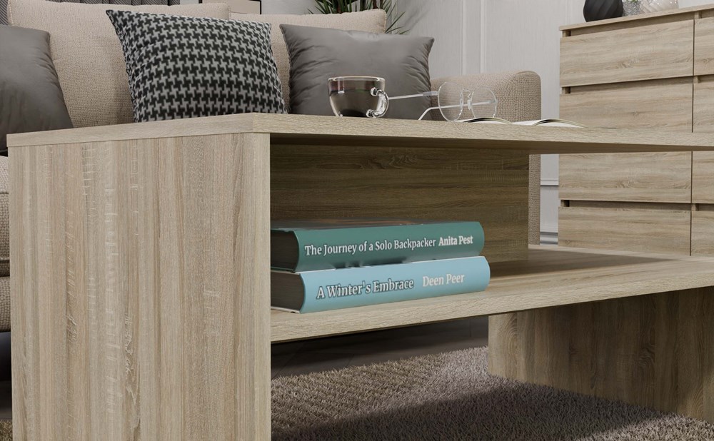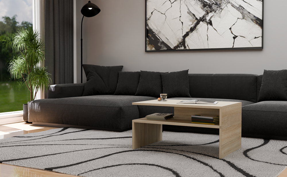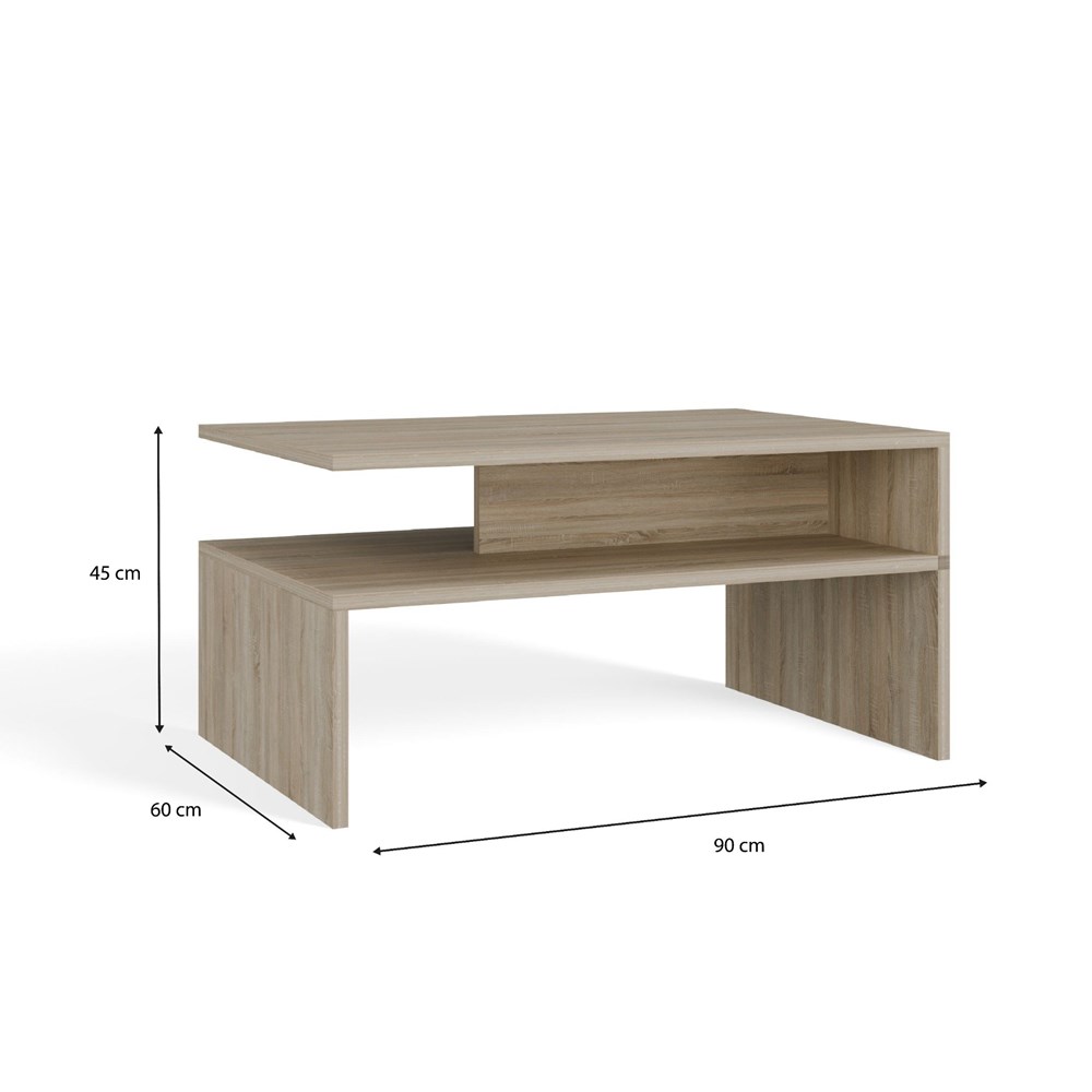 Ideální volba pro ty, kteří ocení krásný a stylový nábytek ve svém interiéru. Moderní stolek v dekoru dub sonoma splní očekávání každého, kdo hledá spojení jednoduchosti a elegance. Jeho lehká a čistá forma z něj činí perfektní doplněk do obývacího pokoje. Nábytek je vyroben z laminované dřevotřískové desky o tloušťce 16 mm.