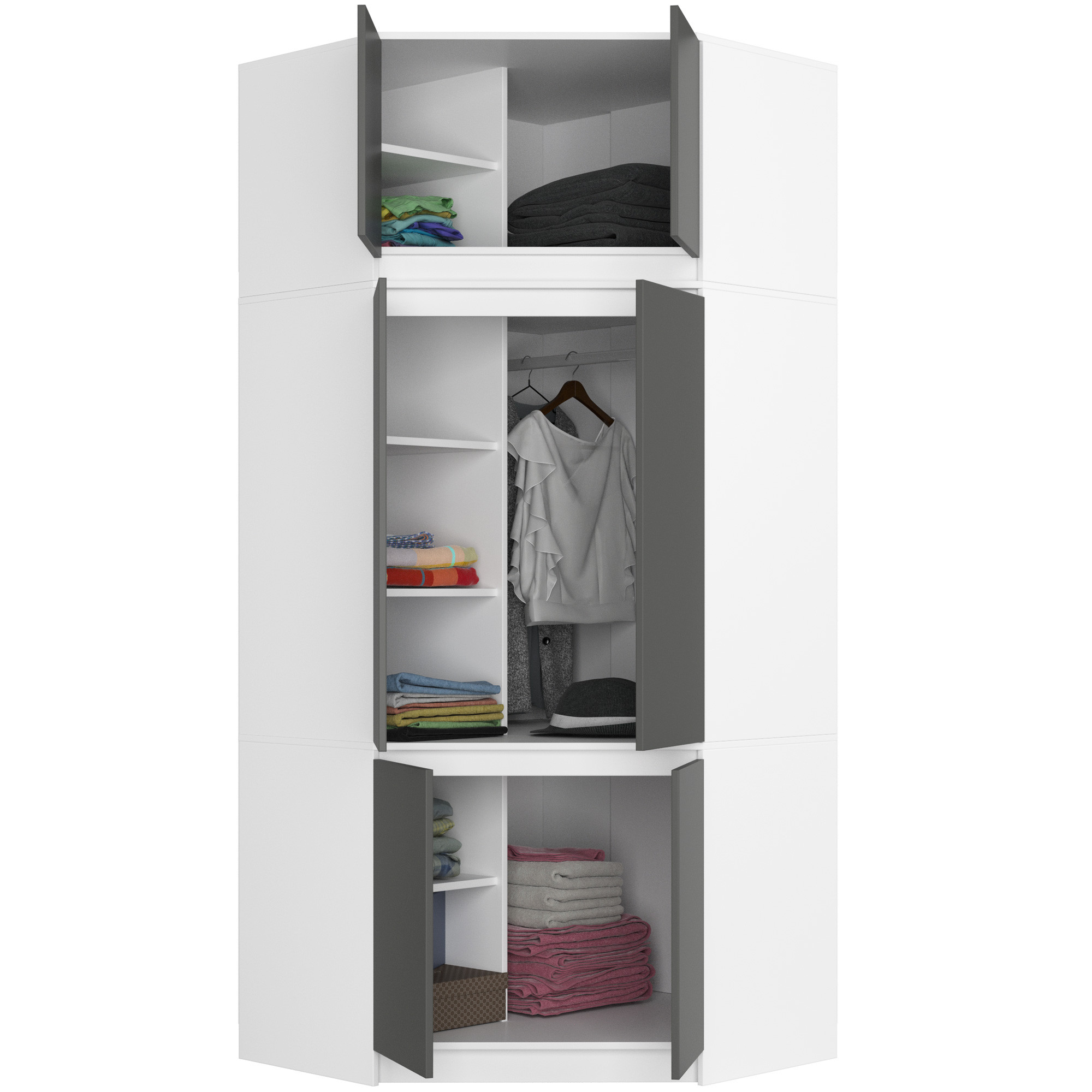 Nástavba na šatní skříň S100 v kombinaci bílé a grafitově šedé barvy je ideálním řešením, pokud potřebujete rozšířit úložný prostor nad stávající skříní. Využívá místo až ke stropu a pomáhá udržet ložnici, šatnu či předsíň přehlednou a uklizenou.