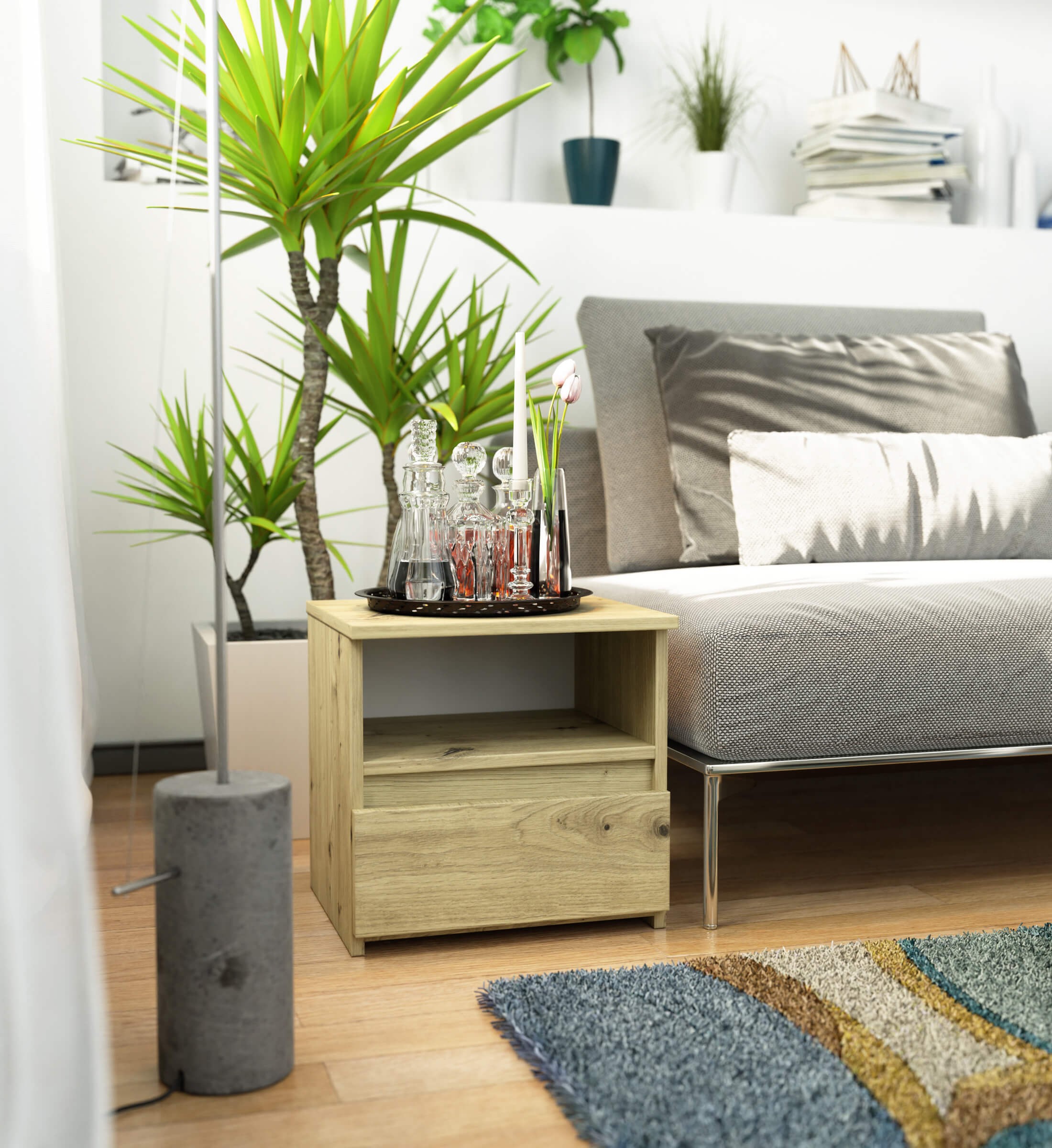 Pokud hledáte elegantní noční stolek, stojí za pozornost noční stolek CL1 v dekoru dub artisan.