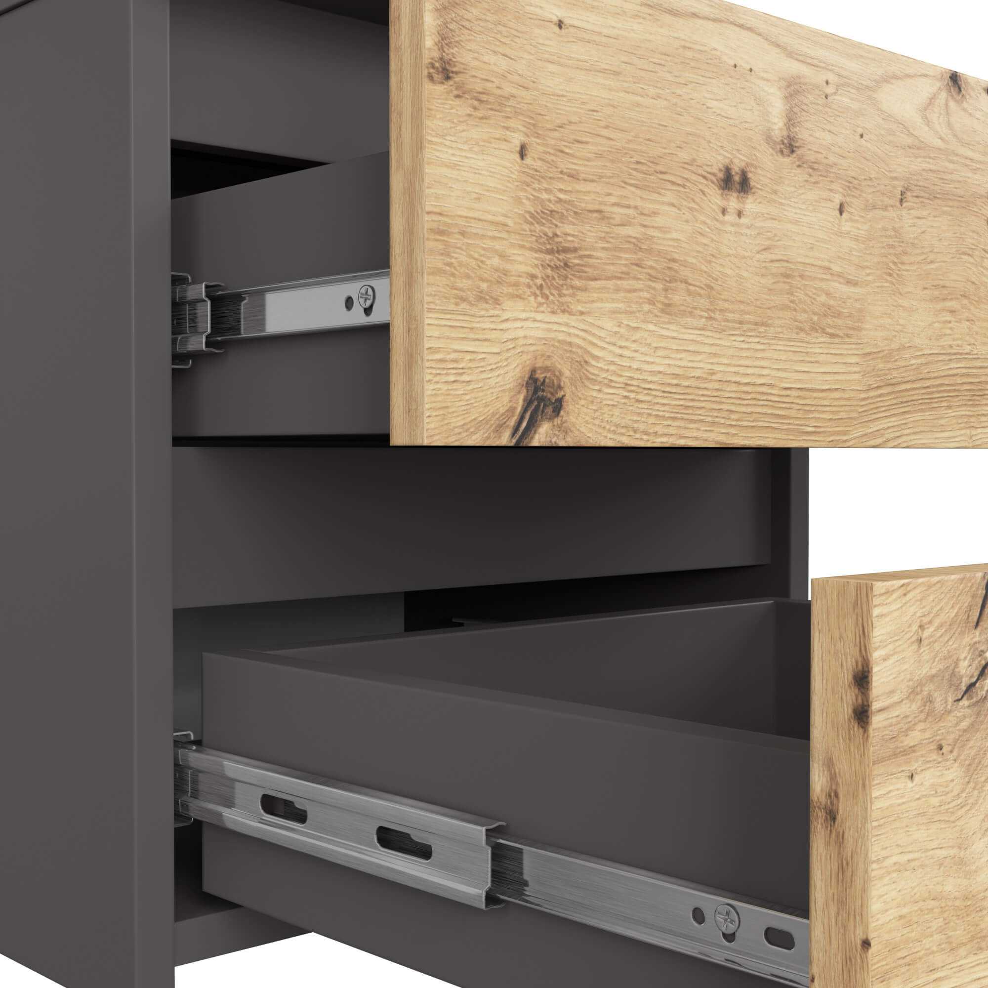V naší nabídce je noční stolek CL2 v grafitově šedé barvě s čely v dekoru dub artisan.