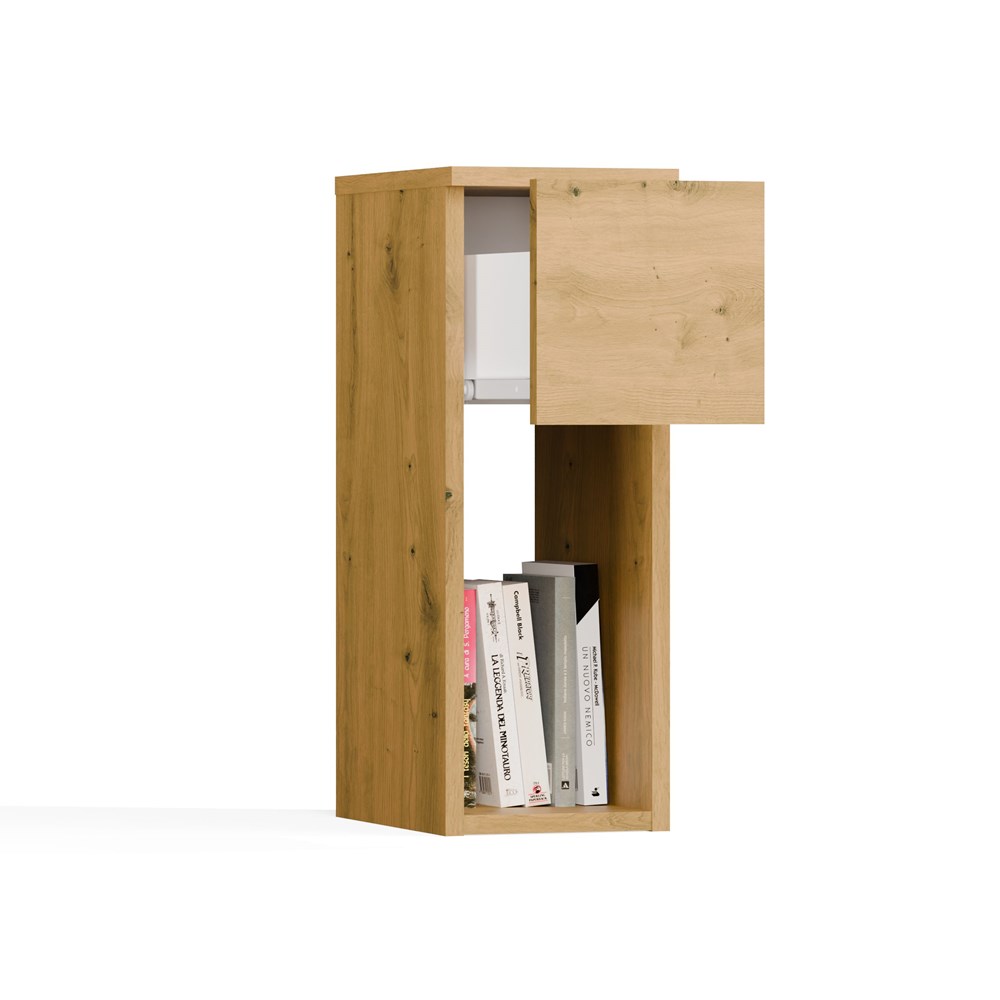 Noční skříňka GALAX 20 1S je praktickým a estetickým doplňkem každé ložnice. Díky otevřené policce a zásuvce poskytuje ideální prostor pro knihu, telefon, nabíječku nebo jiné drobnosti, které chcete mít vždy po ruce.