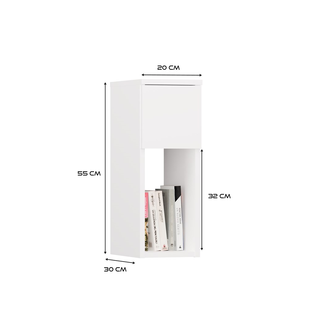 Noční skříňka GALAX 20 1S je praktickým a estetickým doplňkem každé ložnice. Díky otevřené polici a zásuvce poskytuje ideální prostor pro knihu, telefon, nabíječku nebo jiné drobnosti, které chcete mít vždy po ruce.
