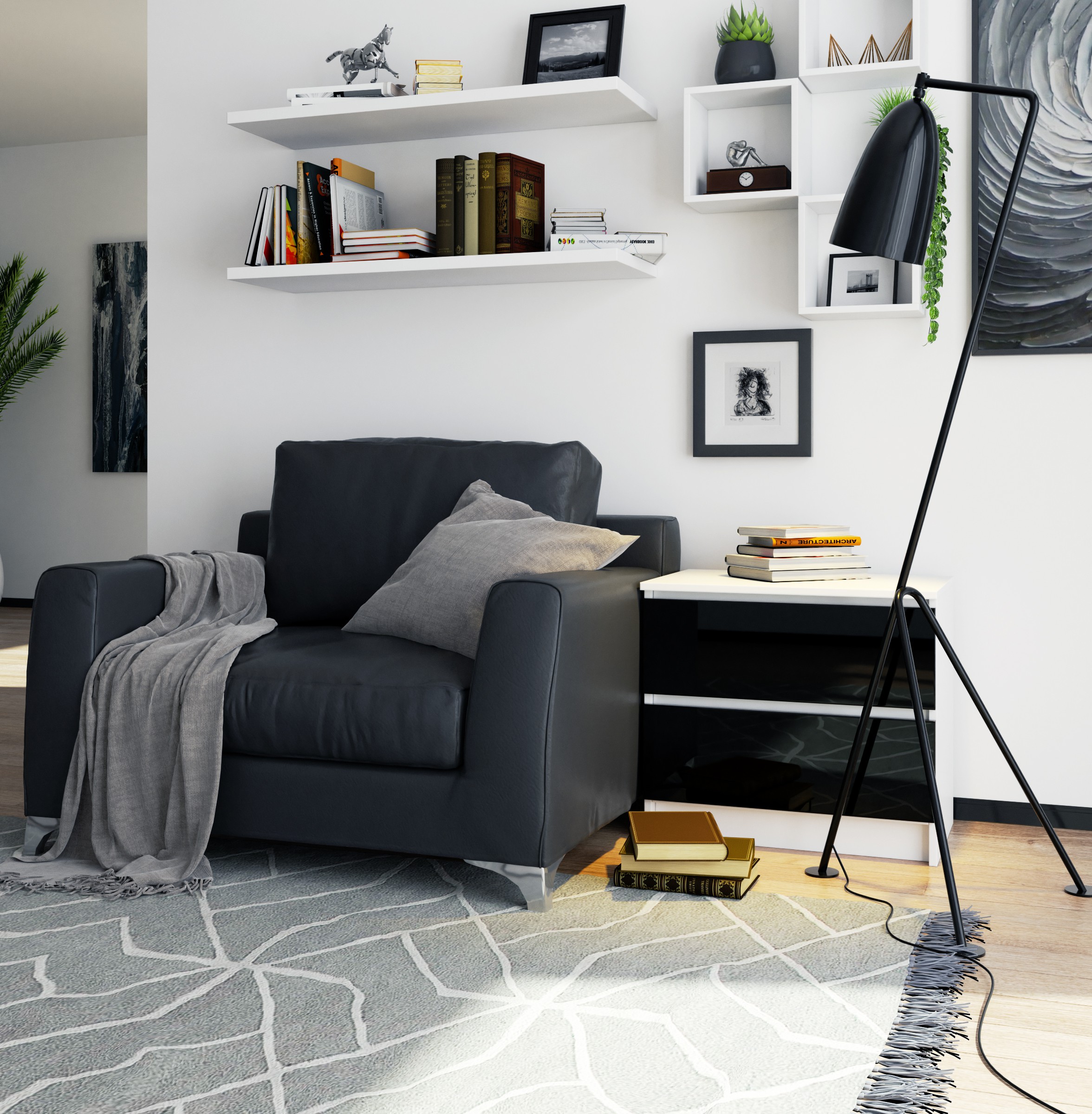 Noční stolek je vyrobena z laminované desky odolné proti poškrábání. Přední plochy zásuvek mají hladký akrylový lesk, který rozjasní interiér a působí luxusním dojmem. Díky praktickým kovovým pojezdům se zásuvky vysouvají plynule a tiše. ABS hrany chrání nábytek před mechanickým poškozením a zvyšují jeho životnost.