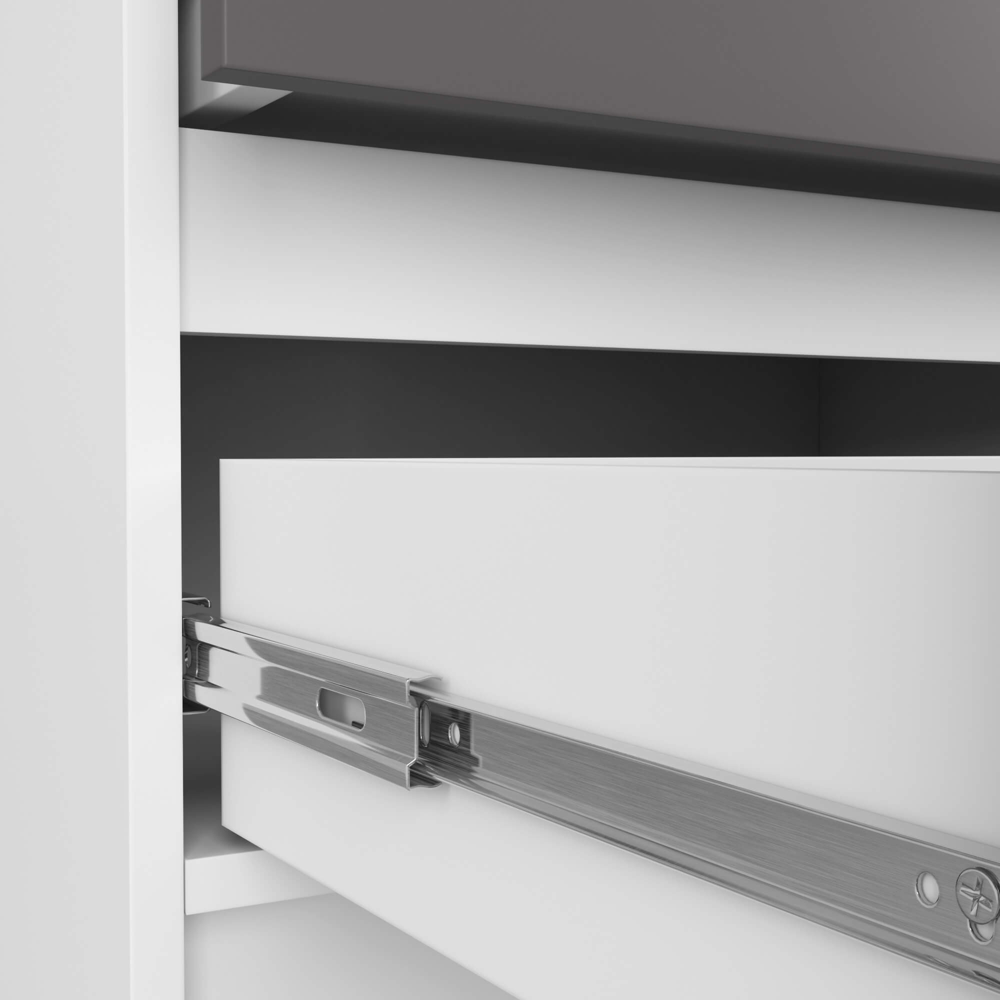 Noční stolek K60 v kombinaci bílého korpusu a grafitově šedých zásuvek je moderním a praktickým nábytkem, který skvěle doplní ložnici, obývací pokoj, dětský nebo studentský pokoj.