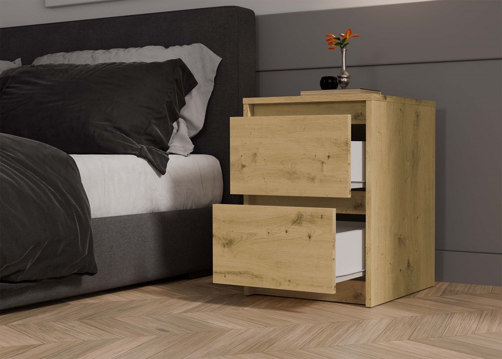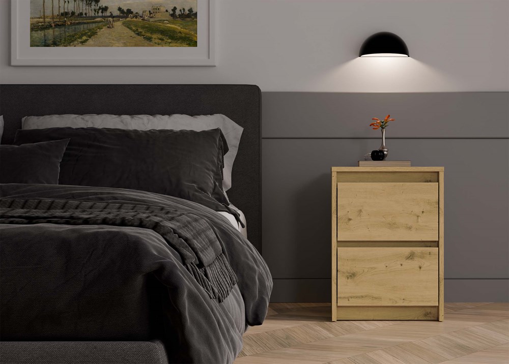 Nezbytnou součástí každé ložnice jsou noční stolky. Brýle, oblíbená kniha nebo telefon by měly být vždy po ruce. Naše noční stolky jsou proto ideálním řešením. Univerzální design splní očekávání všech, kteří oceňují kombinaci jednoduchosti a elegance.