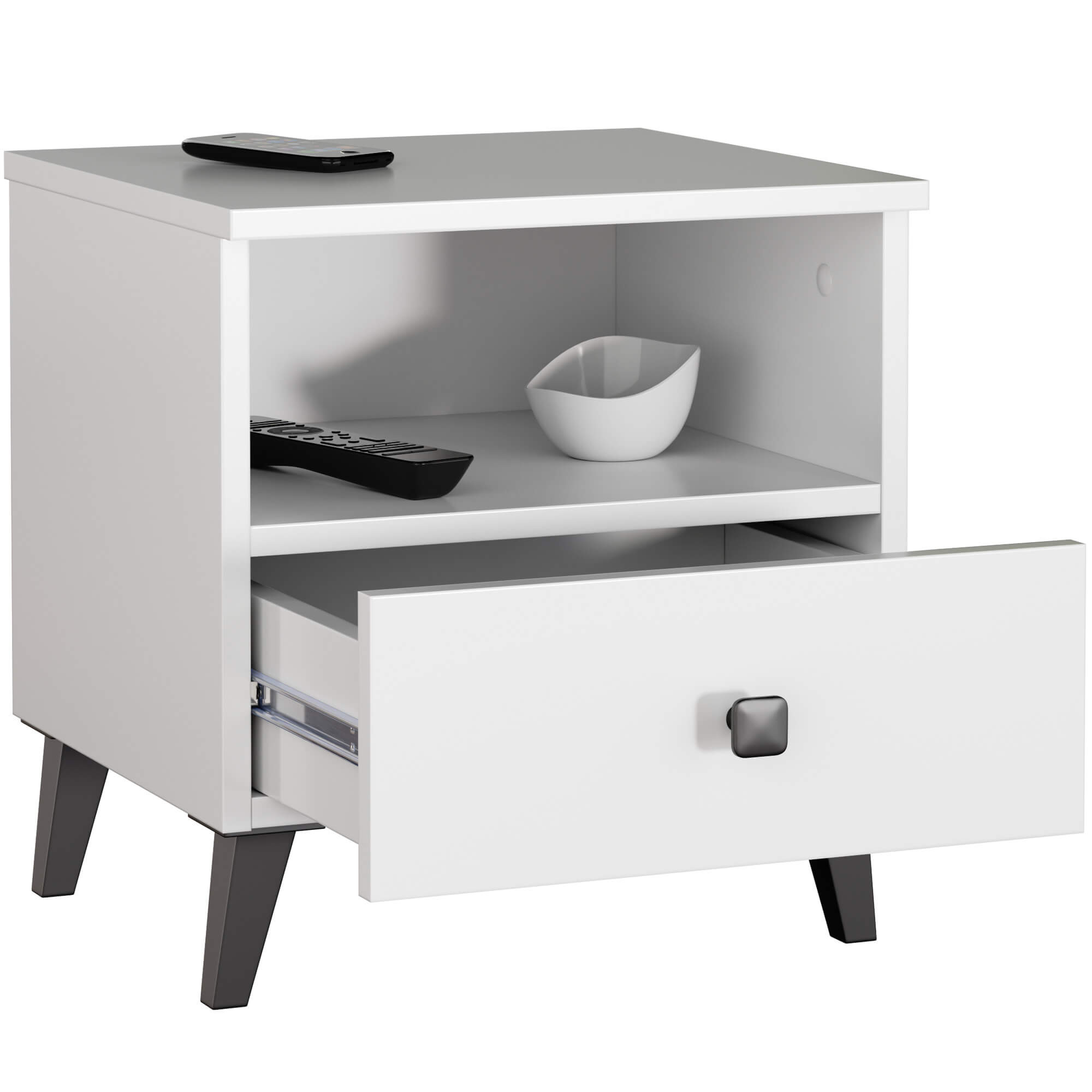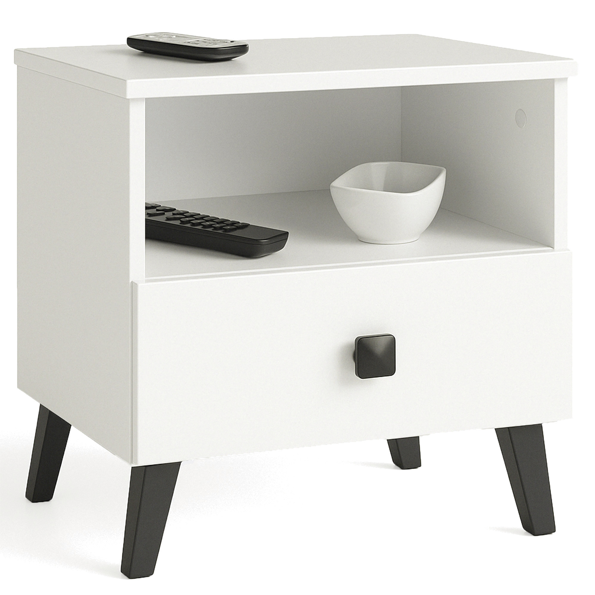 Noční stolek Mobi 1 zásuvka + 1 otevřená police bílá/černá
