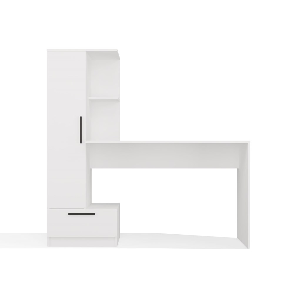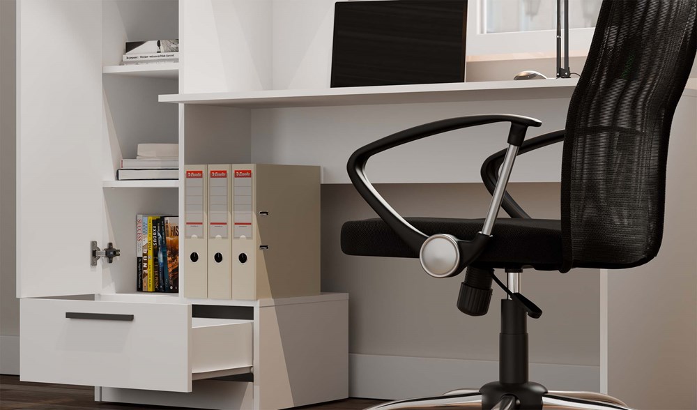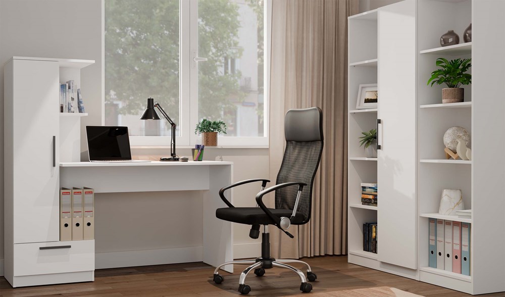 Promyšlené řešení 2 v 1 – psací stůl a police s uzamykatelným úložným prostorem Psací stůl COSMO je praktickým a kompaktním řešením pro ty, kteří hledají pohodlné místo pro práci nebo studium a zároveň funkční úložný prostor. Nábytek se perfektně hodí do pokoje pro mládež, domácí kanceláře nebo pracovny. Integrovaná knihovna je vybavena částí uzavíratelnou dvířky, za nimiž se nacházejí tři prostorné police, a také zásuvkou a otevřenými policemi, díky nimž snadno roztřídíte všechny potřebné věci – od knih a dokumentů po drobnosti. Hlavní výhody sady COSMO: Vestavěná policová skříň s dvířky – 4 skryté police na dokumenty, kancelářské potřeby nebo méně estetické předměty Otevřené police – snadný přístup k nejčastěji používaným věcem Funkční spodní zásuvka – na drobnosti, sešity nebo doplňky Široká pracovní deska – pohodlný prostor pro práci s notebookem nebo poznámkami. Moderní, kompaktní forma – skvěle se hodí i do menších místností. Minimalistické úchytky a forma – hodí se k mnoha stylům interiérů. Psací stůl COSMO je ideální volbou pro ty, kteří ocení ergonomii, moderní styl a pořádek na pracovišti nebo v místě studia. Díky funkčnímu regálu a široké pracovní desce snadno vytvoříte pohodlný prostor pro práci – i v malé místnosti.