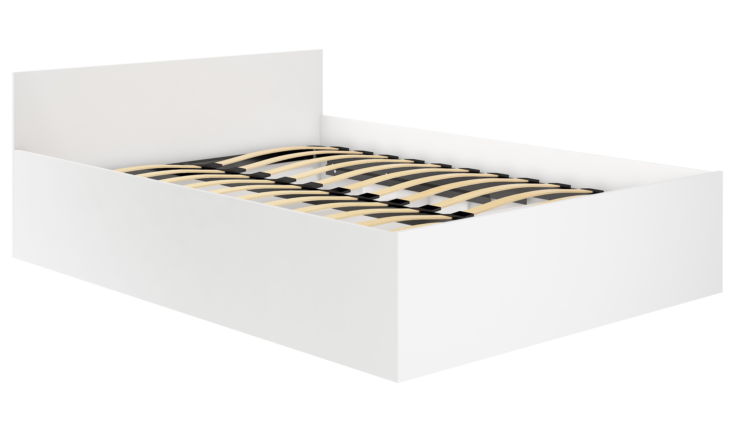 Bílé lůžko 140×200 cm s výklopným kovovým roštem je praktickým a funkčním řešením do ložnice, studentského nebo hostinského pokoje. Jednoduchý tvar a nízké čelo postele působí lehce a nadčasově, díky čemuž se lůžko snadno začlení do moderních i minimalistických interiérů.