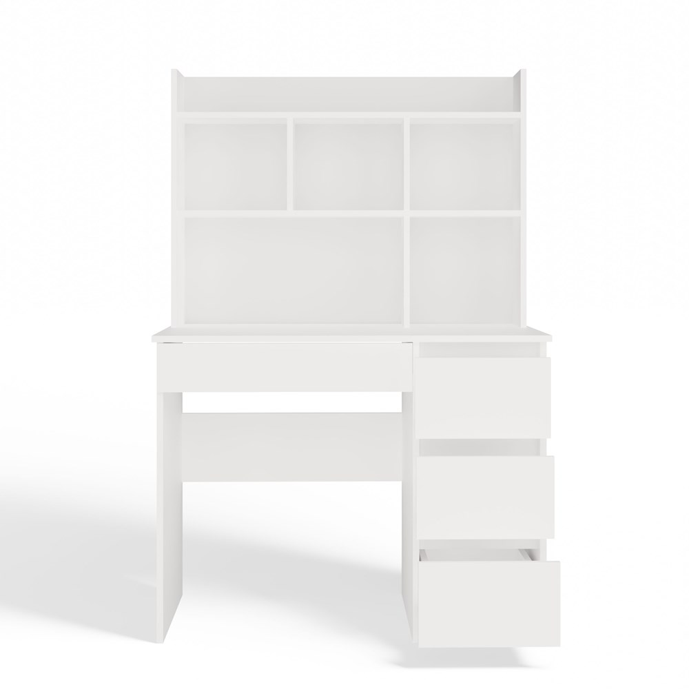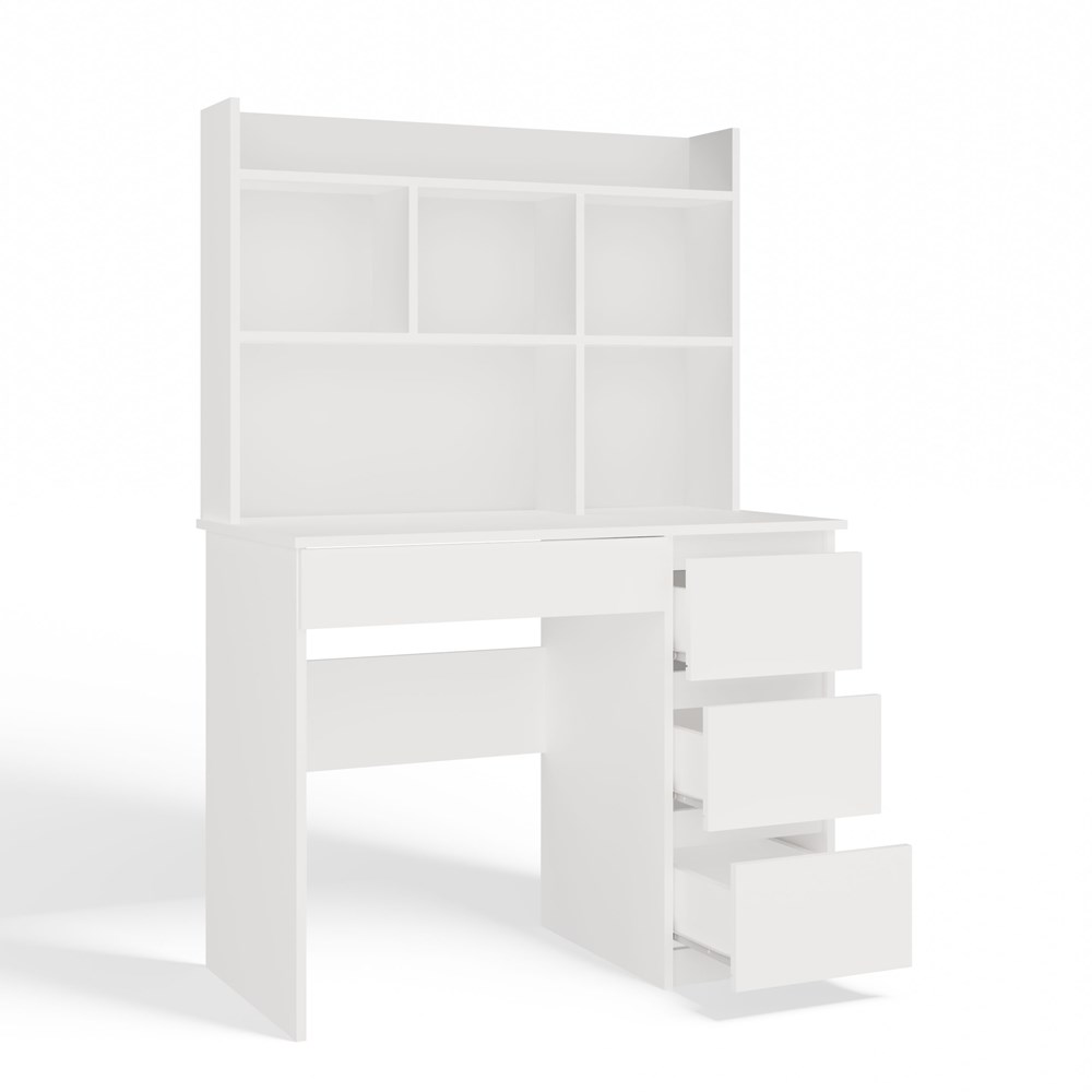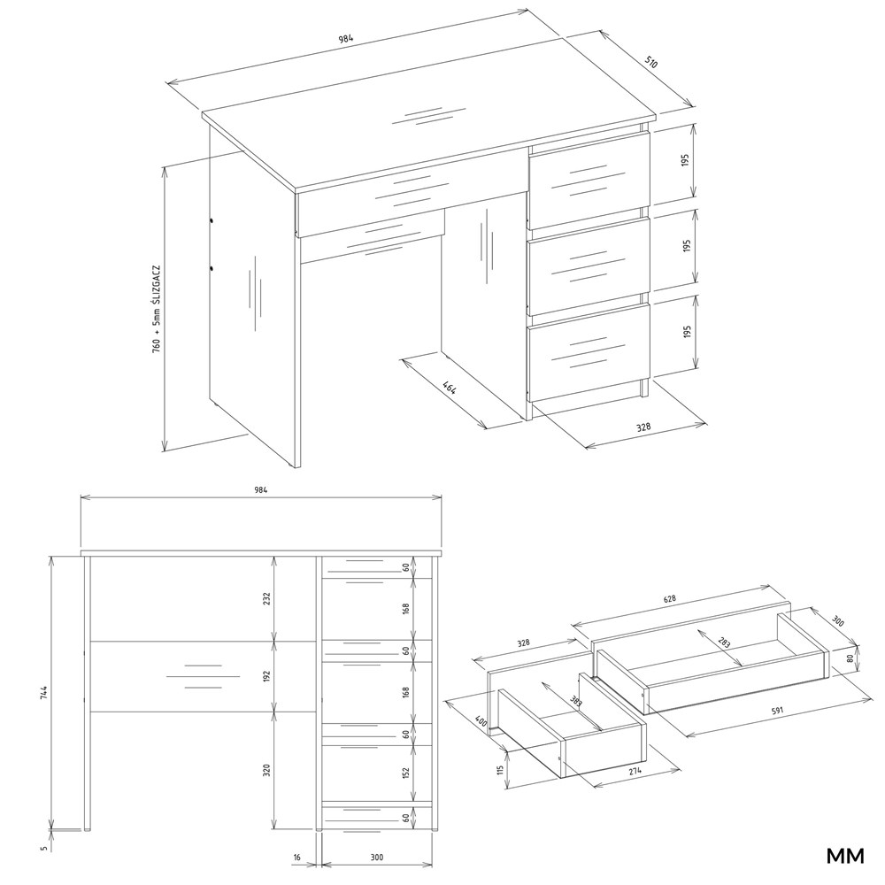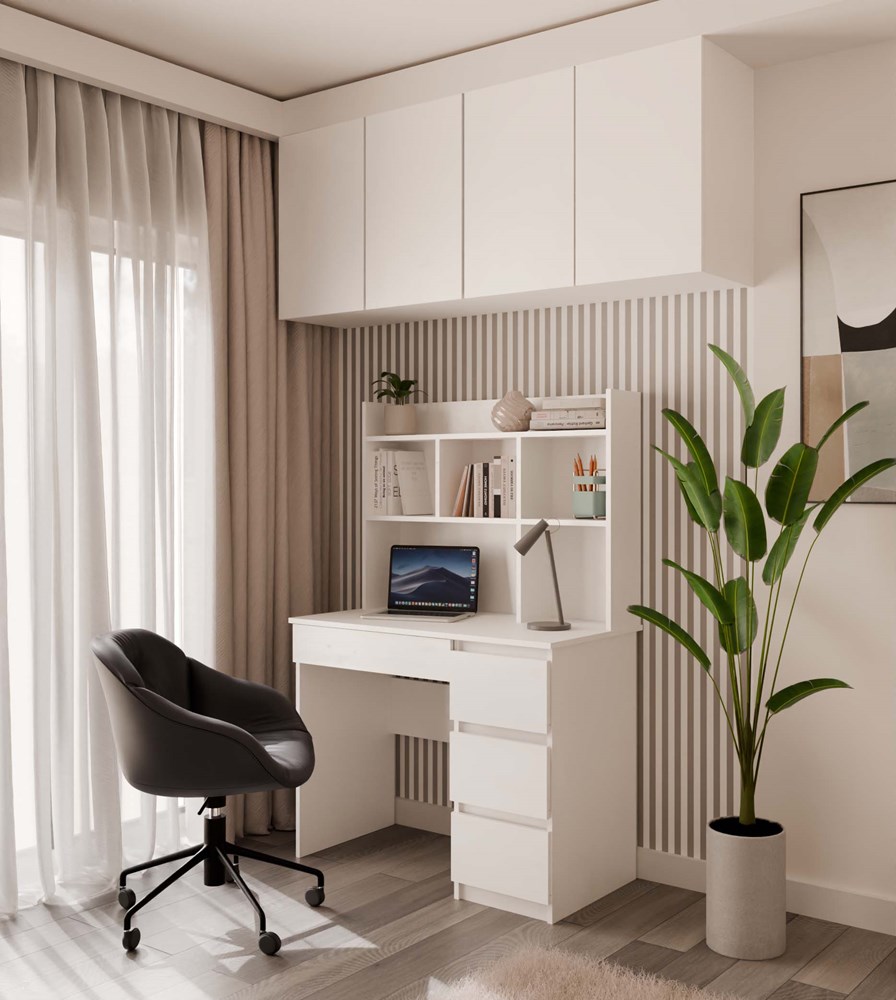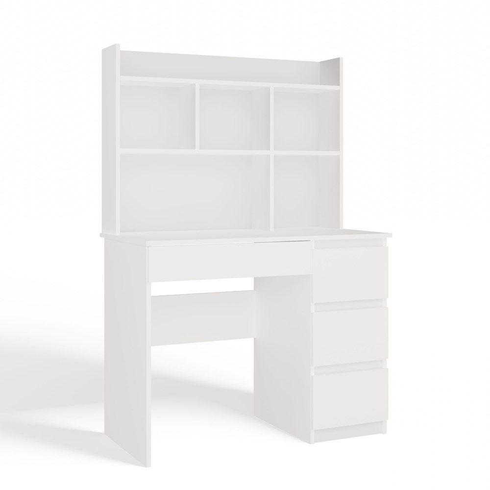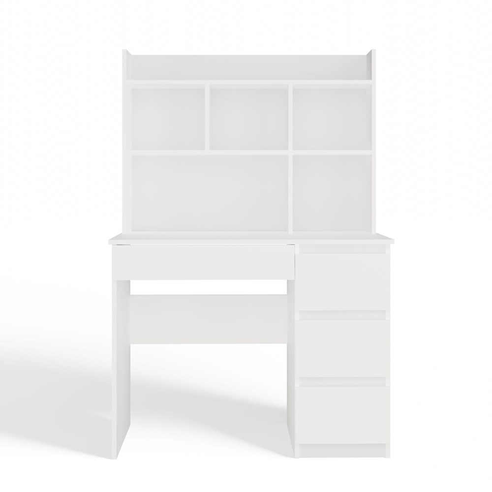 Psací stůl MIJAS pravý s nástavbou je skvělou volbou pro všechny, kteří hledají estetické a pohodlné místo pro studium nebo práci. Integrovaná nástavba umožňuje lepší organizaci pracovního prostoru, zatímco praktické zásuvky a široká pracovní deska zajišťují vysoký komfort při každodenním používání. Moderní tvar, matně bílá barva a promyšlené úložné řešení předurčují tento stůl k použití v dětském či studentském pokoji i v domácí kanceláři.