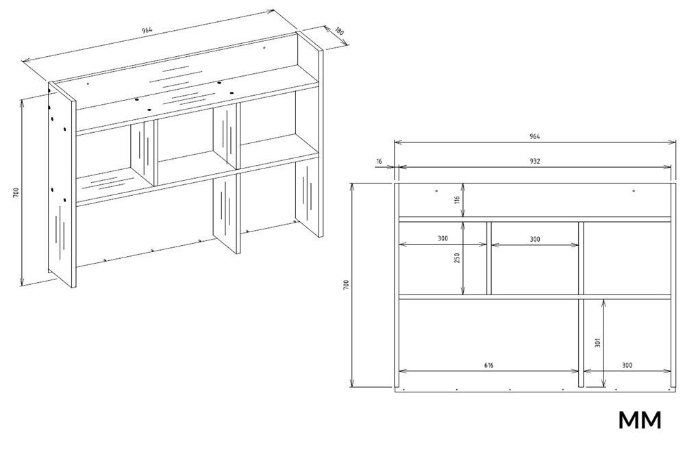 Nástavba s otevřenými policemi – ideální na knihy, sešity, dekorace nebo doplňky
