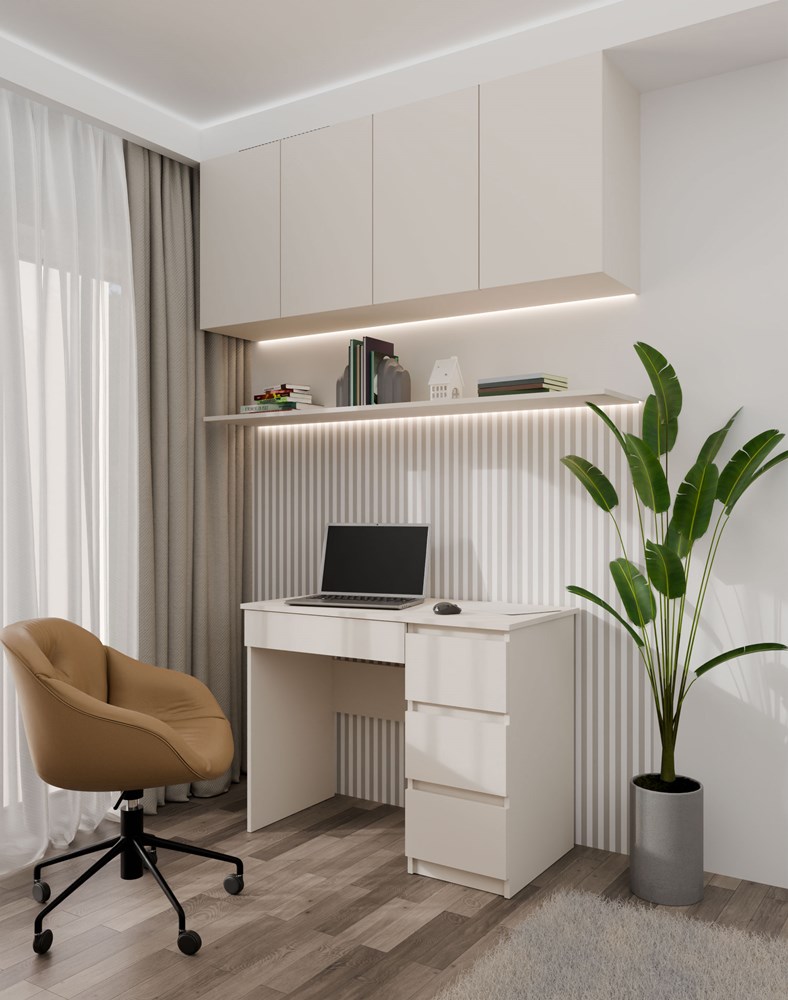 Psací stůl MIJAS pravý se čtyřmi zásuvkami je ideální volbou jak do domácích pokojů, tak do kanceláře. Vyniká především kvalitním zpracováním a moderním vzhledem v módním, přesto nadčasovém odstínu kašmír, který dodává interiéru eleganci a osobitý charakter.