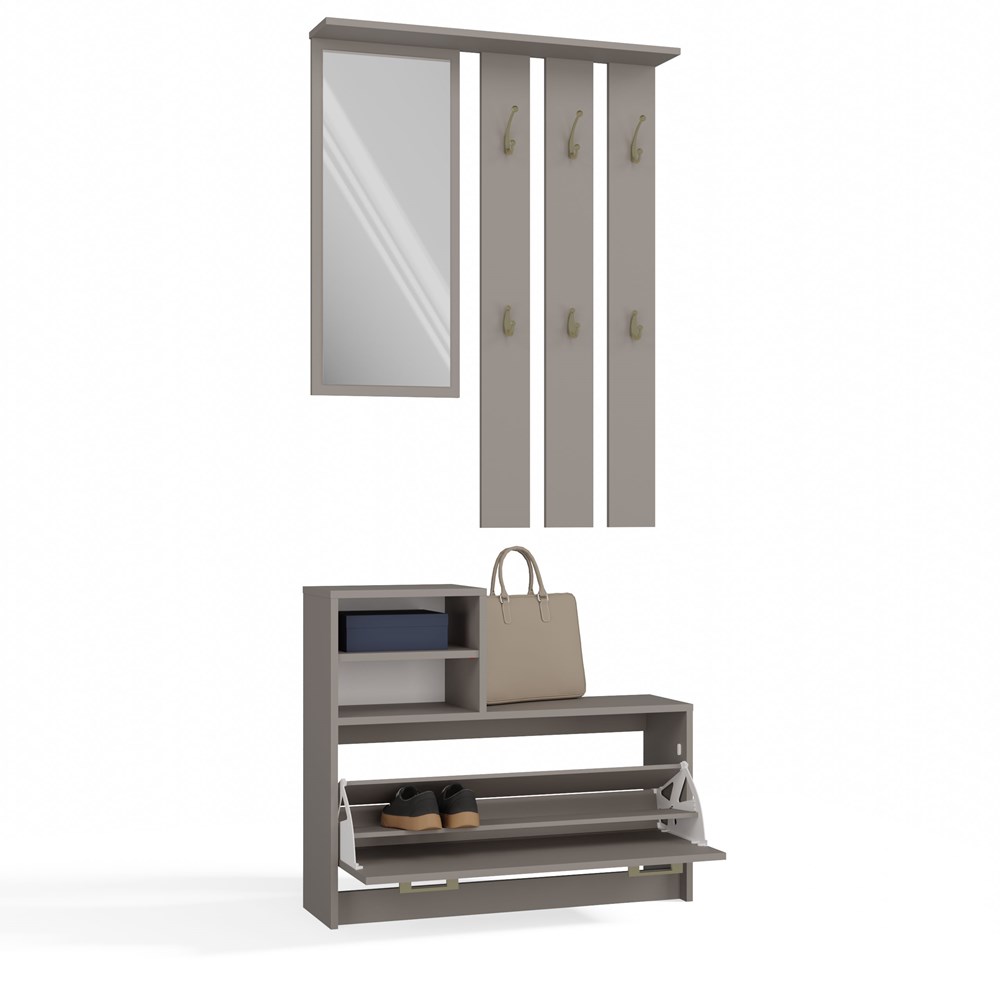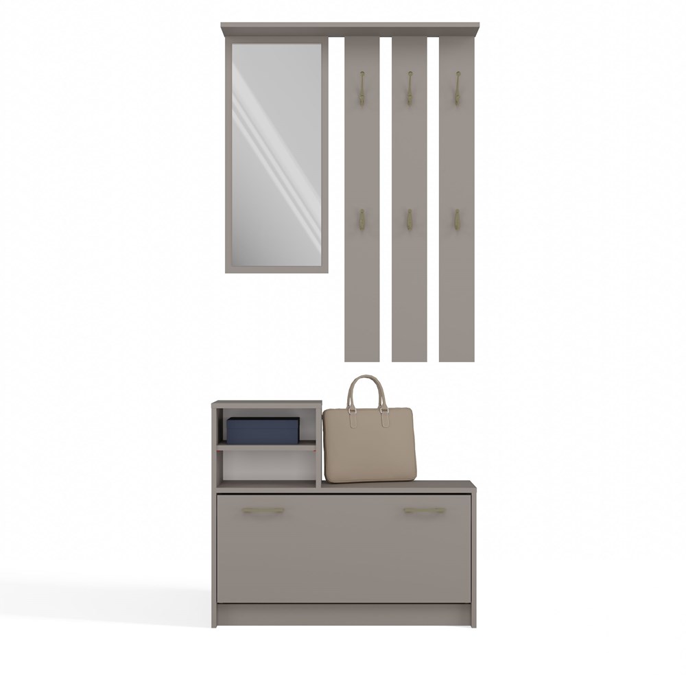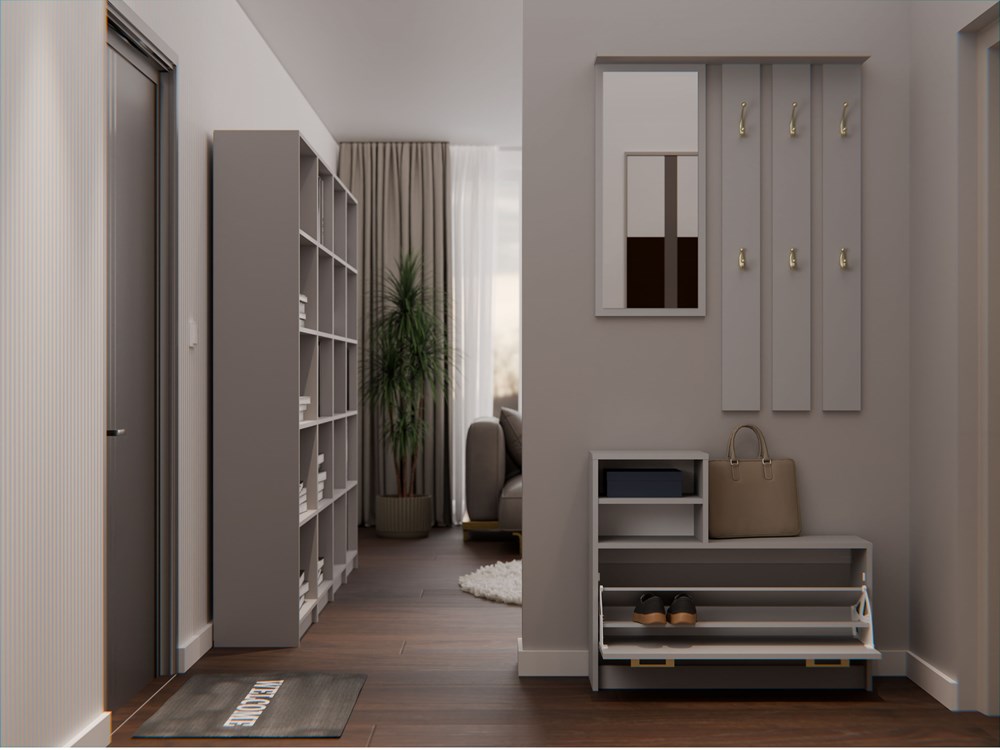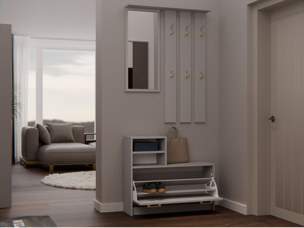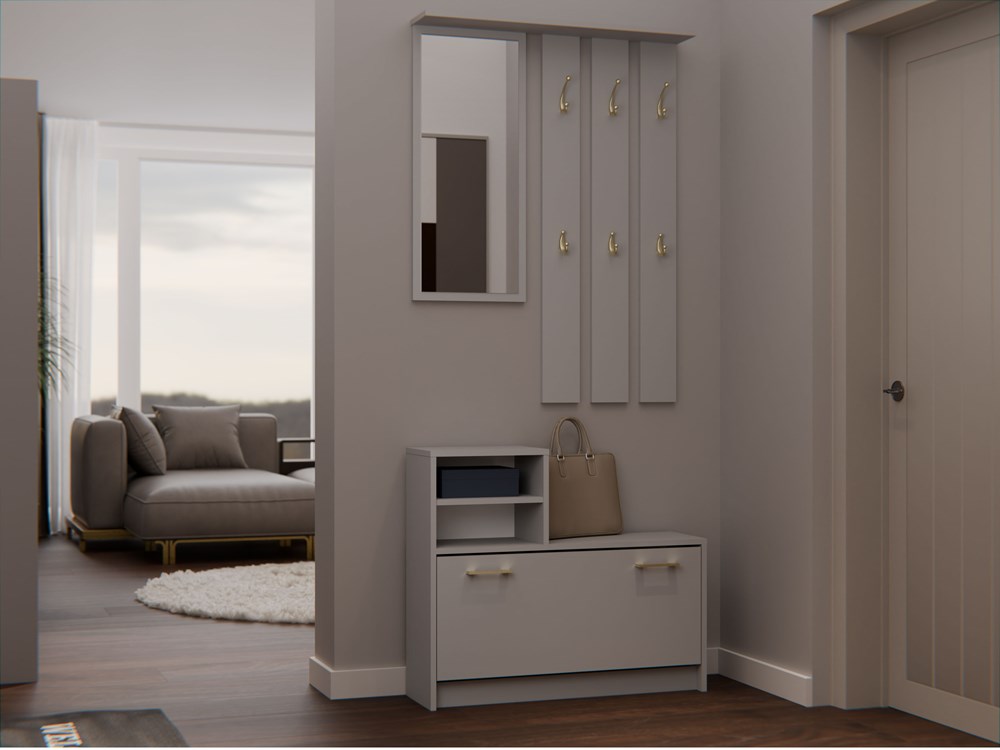 Praktická předsíňová sestava, která kombinuje věšák se zrcadlem a botník, zajistí funkční a pohodlné uspořádání vaší předsíně. Nabízí dostatek prostoru pro oblečení i obuv a pomáhá udržet pořádek hned při vstupu do domova.