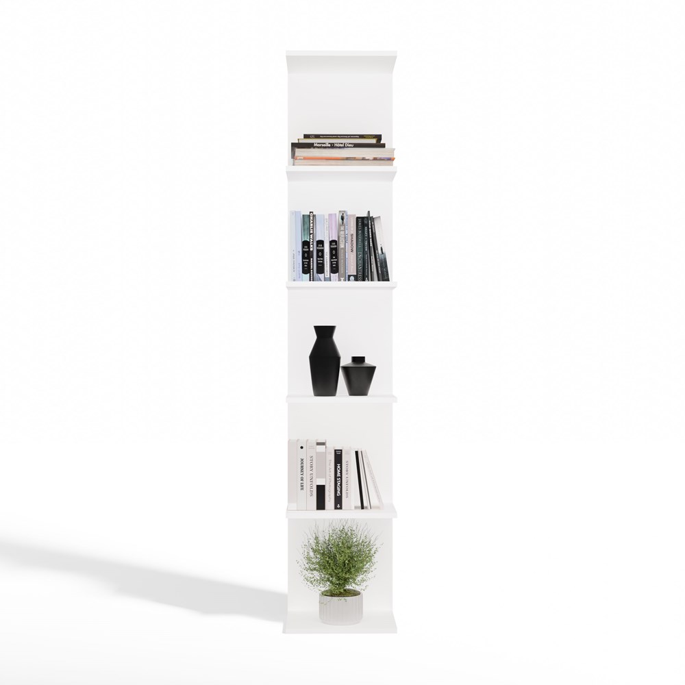 Regál 6P je minimalistický a funkční nábytek, který se skvěle hodí do obývacího pokoje, kanceláře, studentského pokoje nebo domácí knihovny. Díky lehké, moderní formě a neutrální bílé barvě se snadno kombinuje s různými interiérovými styly. Nábytek je vybaven 6 otevřenými policemi, které umožňují pohodlné ukládání knih, dokumentů, dekorací a dalších každodenních předmětů. Vysoká konstrukce zajišťuje velký úložný prostor při zachování kompaktních rozměrů.