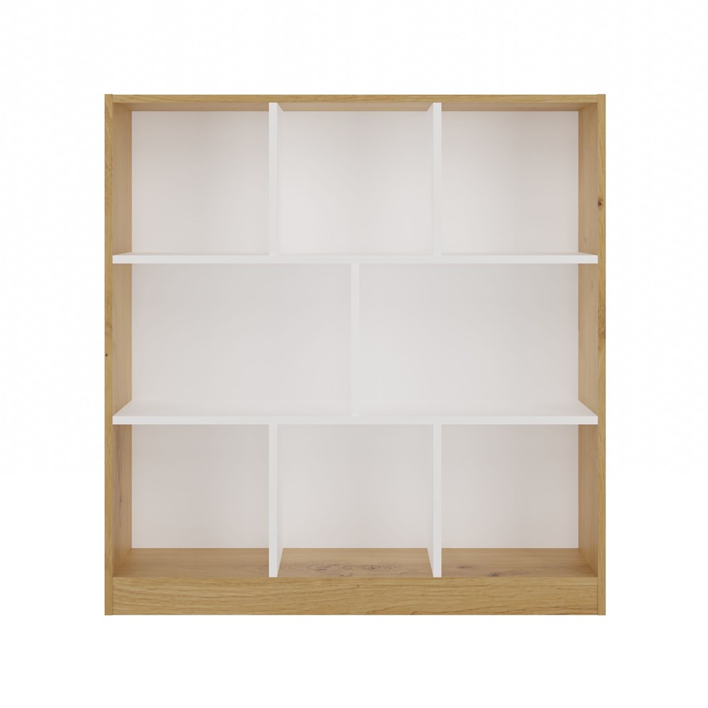 Regál Fiesta 8P je moderní a minimalistický nábytek, který se skvěle hodí do skandinávského stylu. Jeho jednoduchá otevřená konstrukce zajišťuje pohodlné ukládání a zároveň možnost esteticky vystavit knihy, dekorace či doplňky. Díky kompaktním rozměrům najde uplatnění v obývacím pokoji, ložnici, dětském pokoji i domácí kanceláři. Regál disponuje 8 prostornými přihrádkami, které usnadňují organizaci a umožňují stylově vystavit oblíbené předměty. Kombinace teplého odstínu dřeva Dub Artisan s kontrastními bílými policemi dodává nábytku moderní a elegantní vzhled.