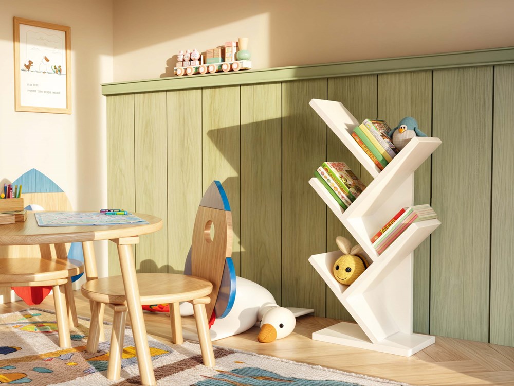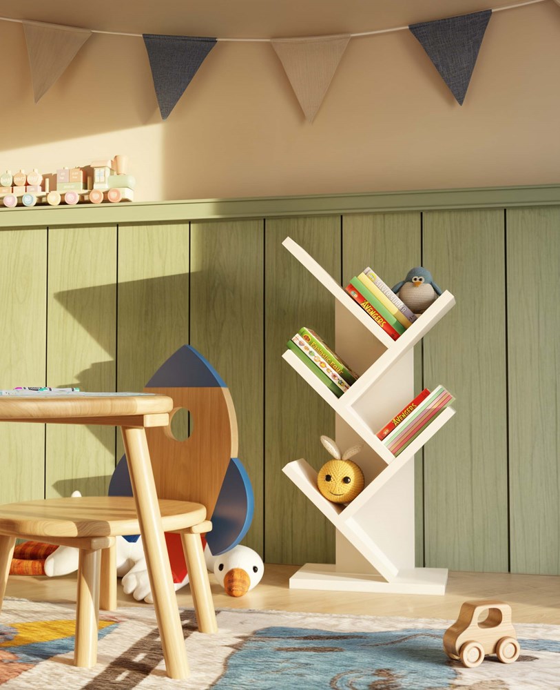 4 šikmé otevřené police – ideální na knihy, pořadače, dekorace či hračky