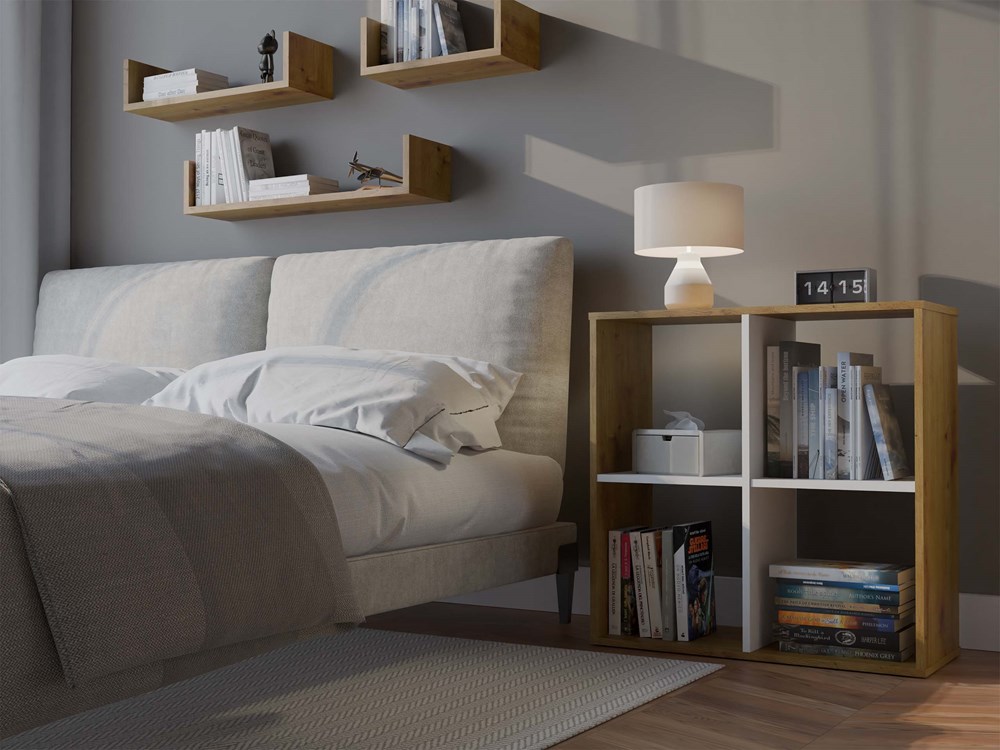 Funkční komorový regál MALAX 2×2 je ideálním řešením pro všechny, kteří oceňují spojení estetiky a praktičnosti. Elegantní a stylová kombinace barev se skvěle hodí do každého interiéru a dodává mu moderní vzhled.