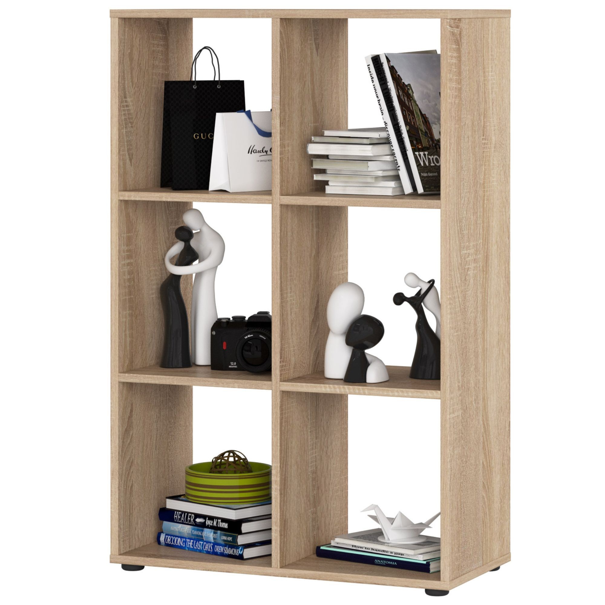 Šest praktických polic poskytuje dostatek prostoru pro knihy, dekorace, dokumenty nebo úložné boxy. Regál umožňuje přehlednou organizaci věcí a zároveň slouží jako estetický prvek interiéru.
