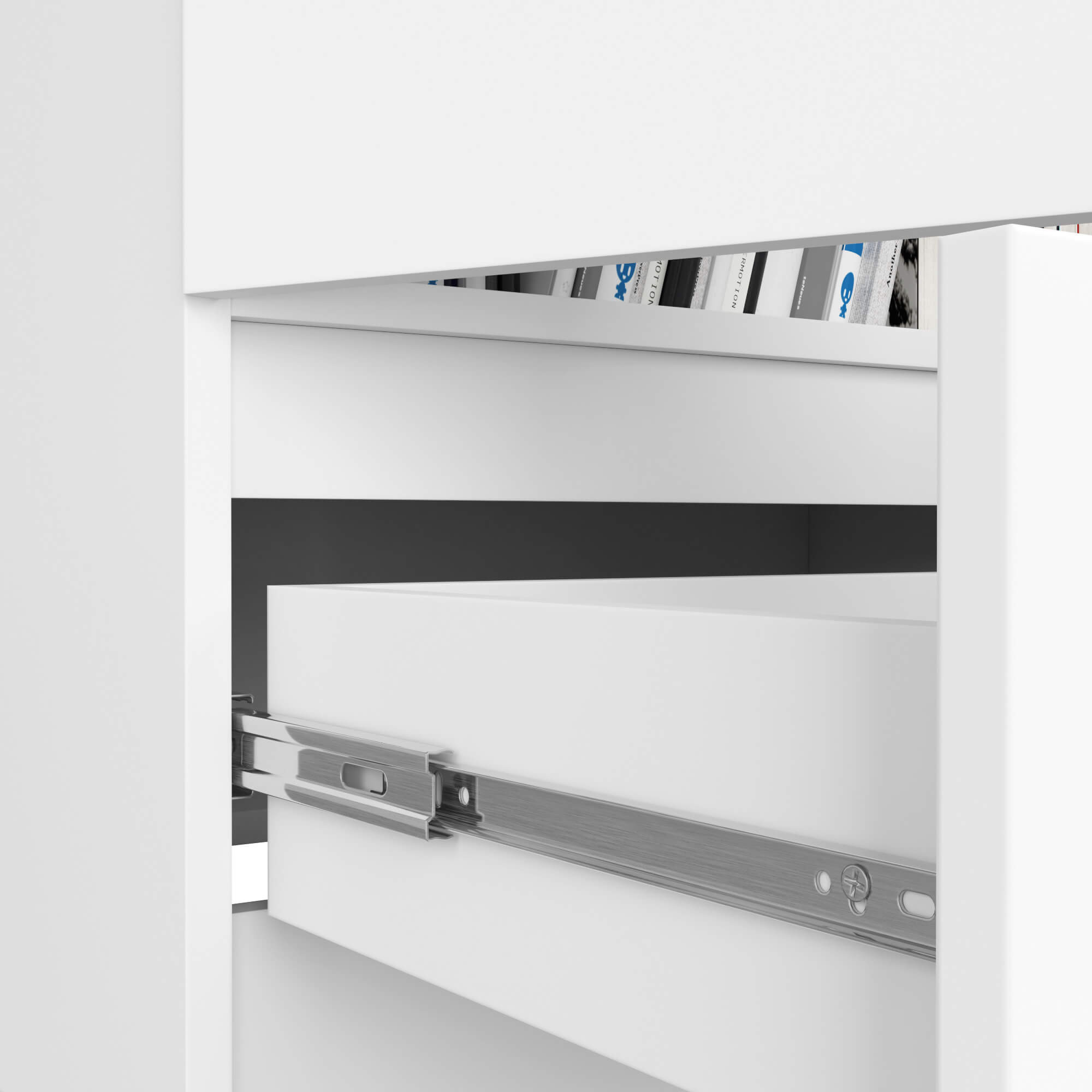 Praktická zásuvka s kovovými pojezdy a blokací výsuvu.