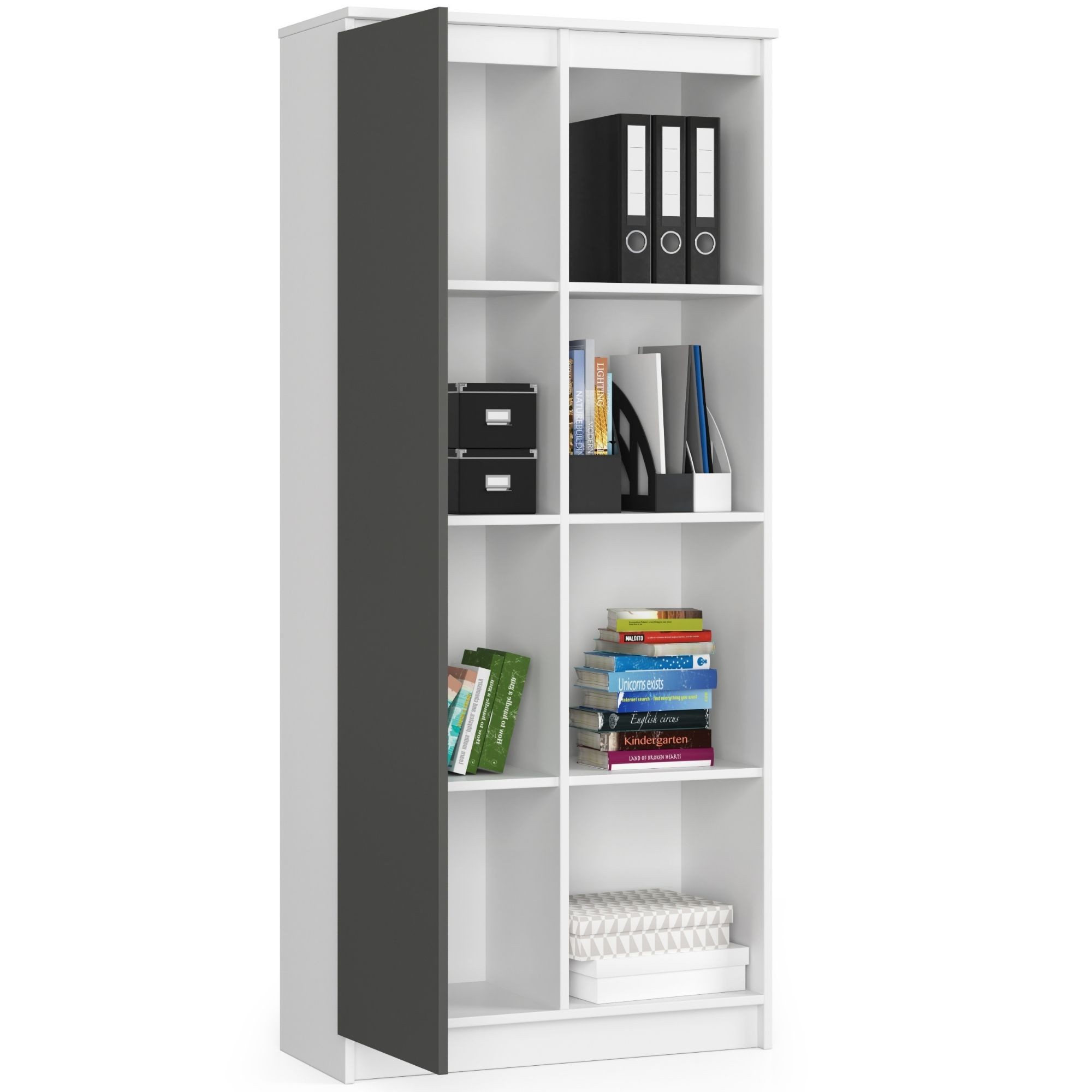 Kancelářský regál R80 s jedněmi dvířky je praktickým a funkčním řešením pro uspořádání dokumentů, knih a dalších kancelářských či domácích doplňků. Kombinace bílé konstrukce s grafitově šedými dvířky působí moderně a elegantně a snadno zapadne do kanceláře, pracovny i obytného interiéru.