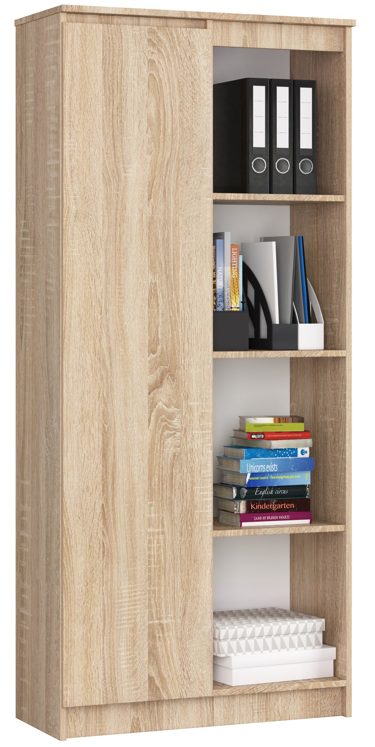 Kancelářský regál R80 v dekoru dub sonoma s osmi policemi a jedněmi dvířky je funkčním a elegantním řešením pro ukládání dokumentů, knih i dalších předmětů. Přirozený vzhled dekoru dub sonoma působí teple a nadčasově, díky čemuž se regál snadno kombinuje s ostatním nábytkem v kanceláři i domácnosti.