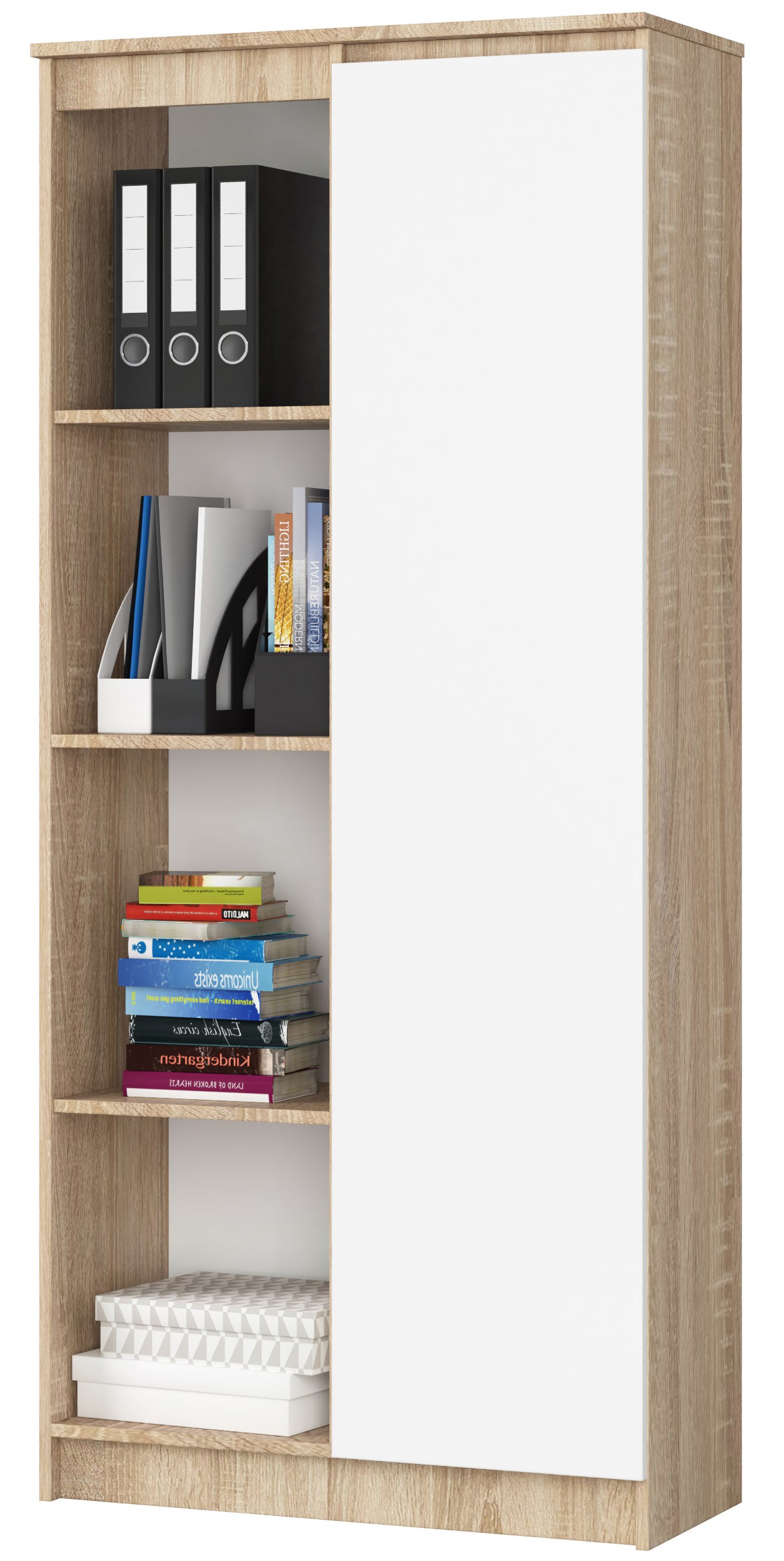 Kancelářský regál R80 v dekoru dub sonoma s bílými dvířky a osmi policemi představuje praktické a elegantní řešení pro ukládání dokumentů, knih i kancelářských potřeb. Kombinace světlého dekoru dřeva dub sonoma a bílých dvířek působí nadčasově, čistě a snadno se kombinuje s ostatním nábytkem v kanceláři i domácím interiéru.