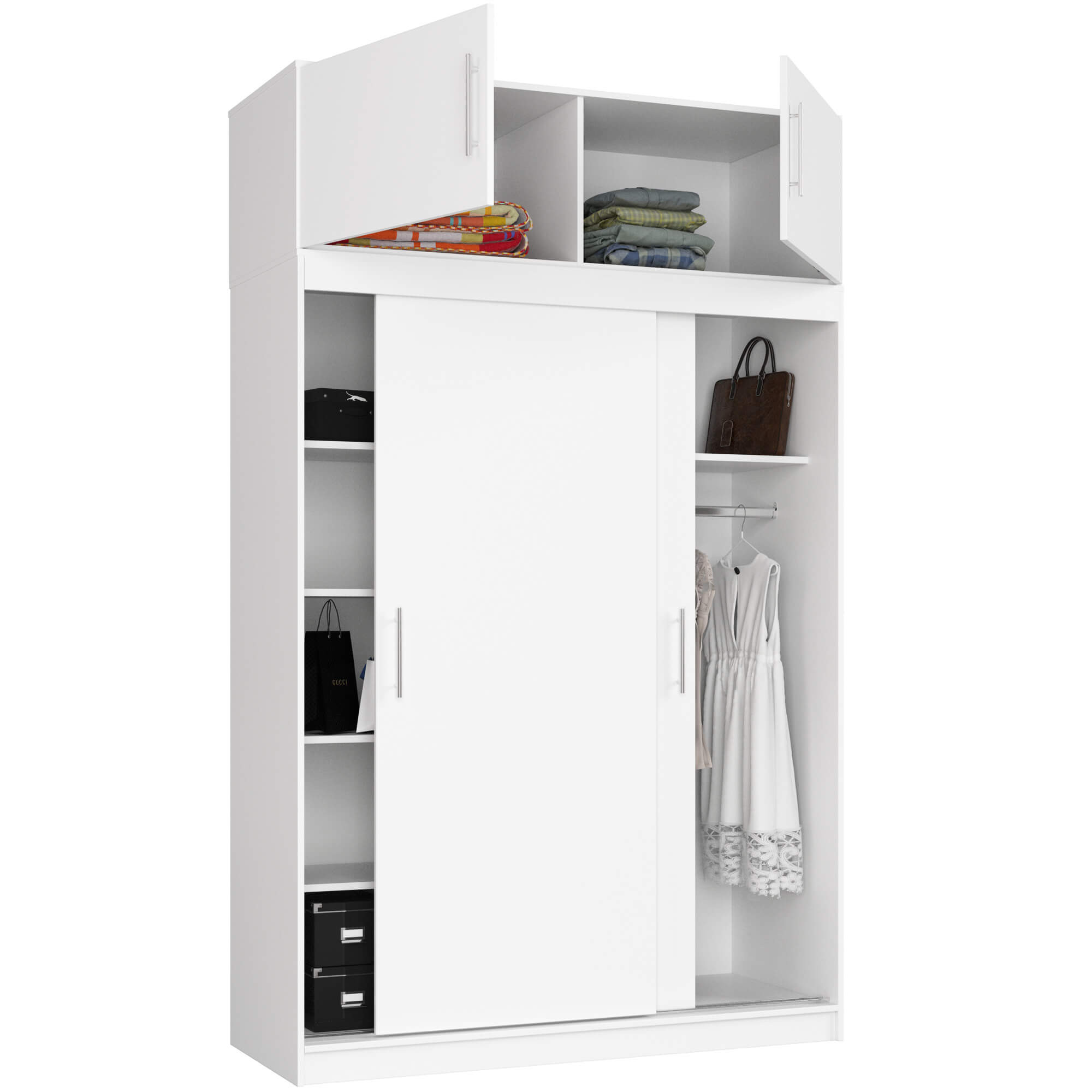 Skříň se skládá ze dvou segmentů. Spodní část je vybavena dvěma posuvnými dveřmi a nabízí šest prostorných polic spolu s praktickou šatní tyčí, která slouží k zavěšení košil, šatů, obleků nebo svrchního oblečení. Horní část tvoří nástavba uzavíratelná dvěma dveřmi, uvnitř které se nacházejí dvě police určené pro uložení sezónních nebo méně často používaných věcí.
