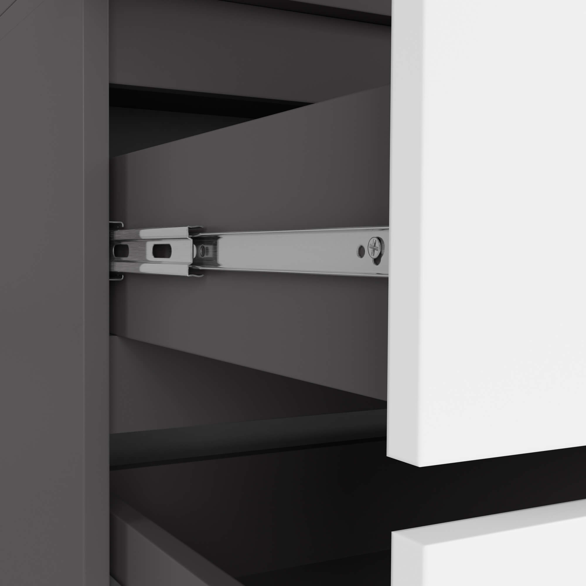 dvě prostorné zásuvky ve spodní části skříně