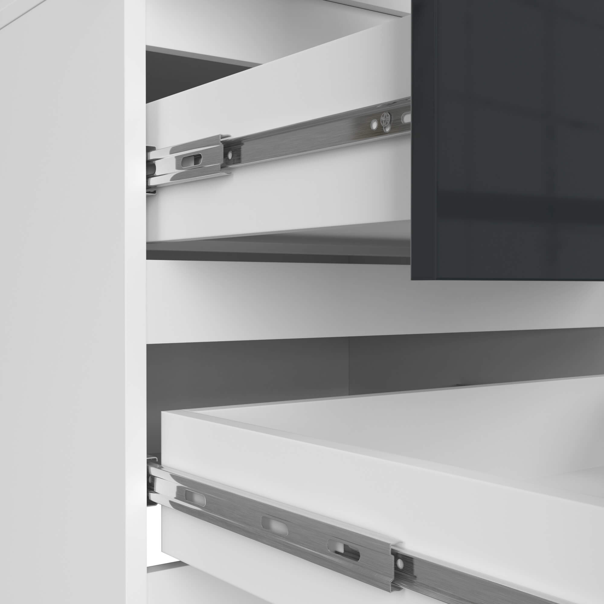 bílá konstrukce v kombinaci s grafitovými lesklými čely