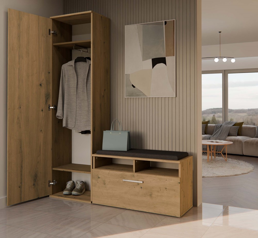 Možnost dokoupení varianty garderoby DUO – skříň DUO + doplňková část se skříňkou a věšáky.
